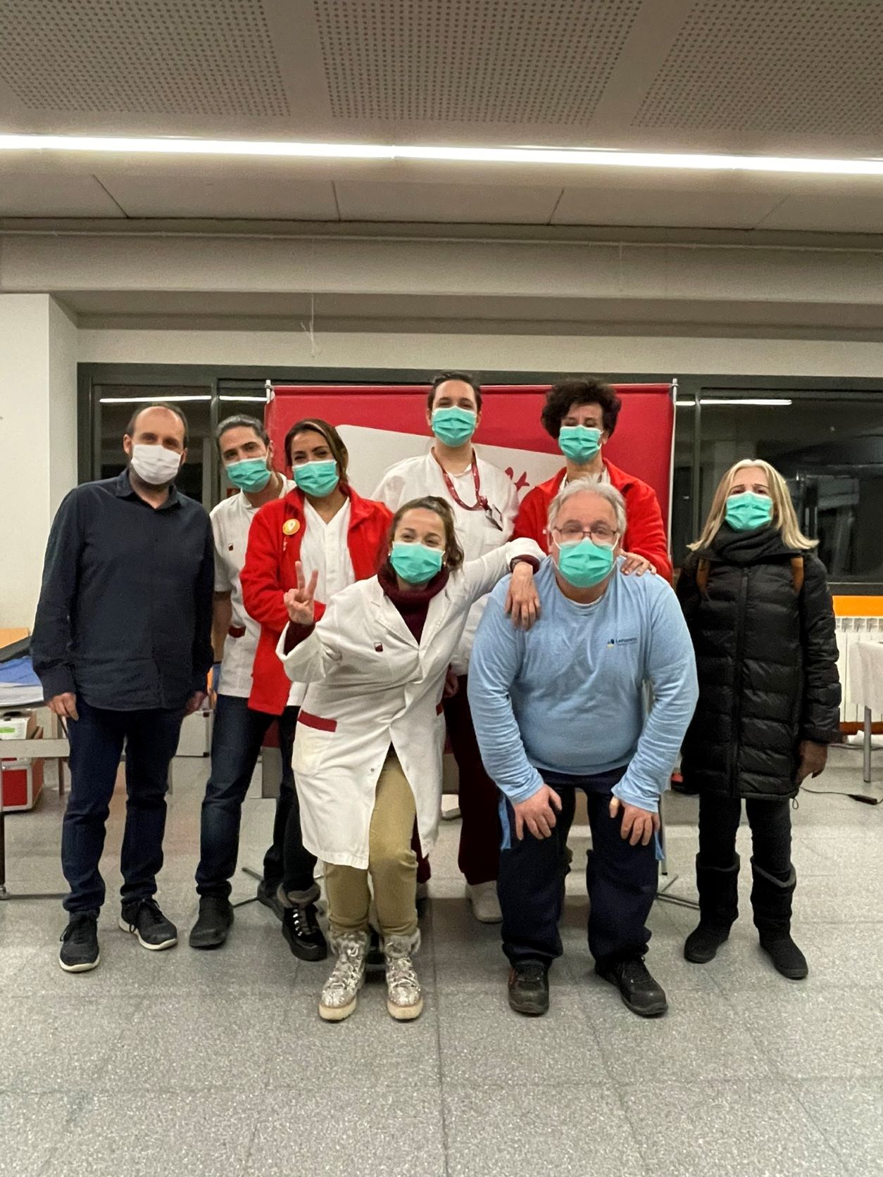 El director de l’institut Baix a mar, Jordi Font, al costat de l’infermer, l’Enric, la metgessa, la Jessli, la infermera Diana, l’administrativa, la Lucía, la coordinadora, la Sílvia. I a baix, la infermera Cristina, i el conductor, l’Àlvaro
