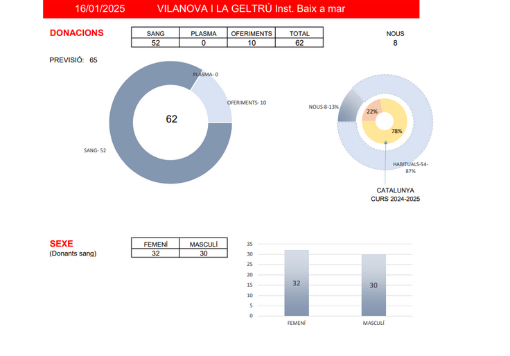 L’alumnat i les dues professores en tenen les dades exactes, perquè ell dia següent de l’esdeveniment, l’organització del Banc de Sang envia  un correu electrònic al centre amb les dades del dia anterior: