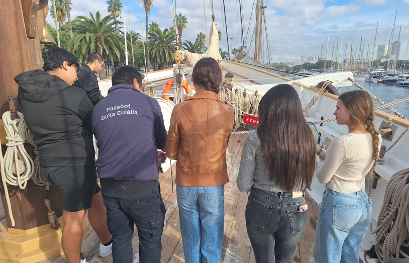 Durant la jornada, els alumnes van pujar a bord d’aquest històric veler atracat al Port de Barcelona, on van aprendre de primera mà com és la vida a mar i el funcionament d’una embarcació. També van conèixer la història del pailebot Santa Eulàlia, construït l’any 1918 i que, a principis del segle XX, va realitzar dos viatges fins a Cuba.
