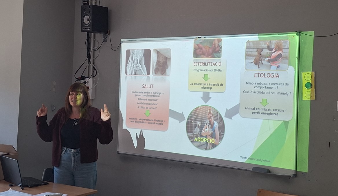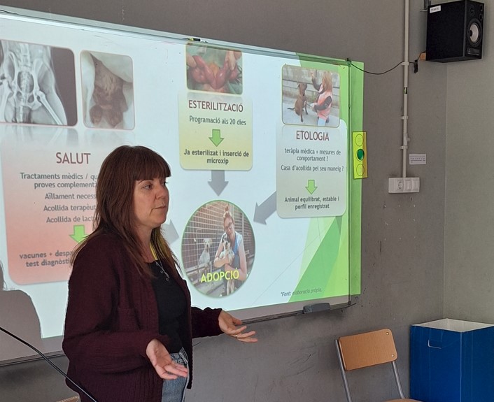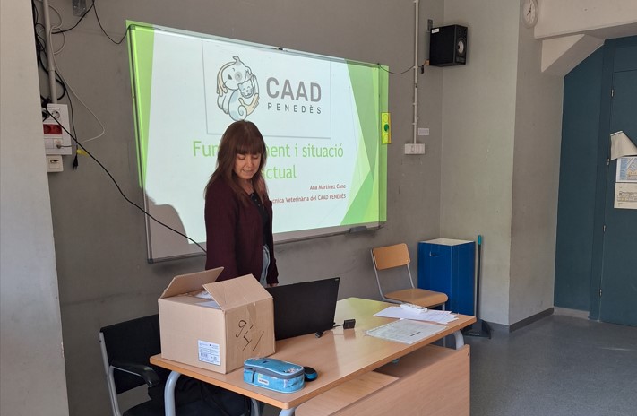 El passat dijous 10 d’octubre els alumnes de 3r que fan l’optativa CAAD PROJECT van rebre la visita de la directora i veterinària del CAAD (Centre d’Acollida d’Animals Domèstics), la senyora Ana Martínez, qui ens va oferir una xerrada molt interessant sobre la tasca que realitzen, la problemàtica de l’abandonament d’animals i la importància de la tinença responsable dels animals de família. La sessió va ser molt instructiva i vam aprendre moltes coses valuoses.