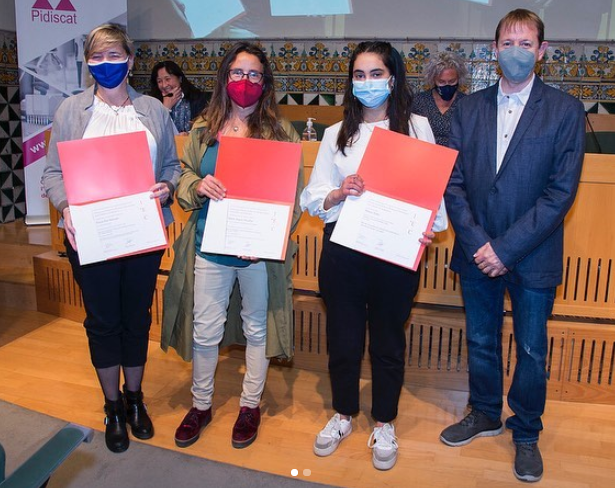 La Salma T. acompanyada de les seves tutores va recollir el premi de la Societat Catalana de Química pel seu treball de recerca sobre els polifenols i premiat amb una activitat científica virtual.