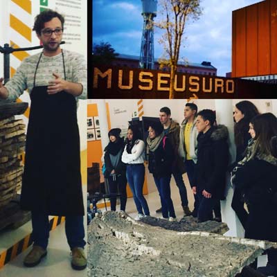 Alumnes que ja treballen com a guies, com l’alumne Maciej Chrzanowski, ens ha dirigit durant la vista dels alumnes de Turisme al MUSEU DEL SURO, acompanyant la Laura, la guia oficial del museu.