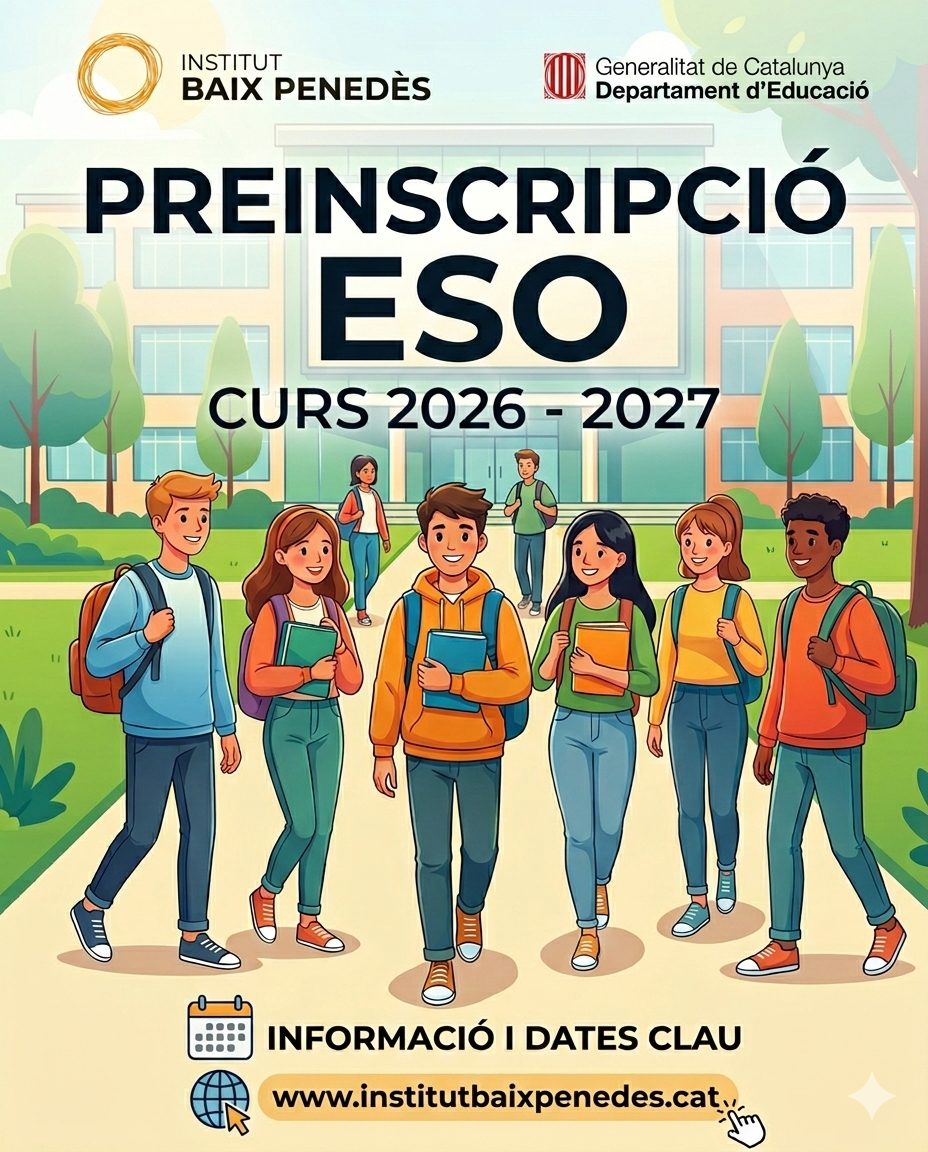 Informació sobre el procés de preinscripció que ha de possibilitar que les vostres filles i fills puguin estudiar l’ESO el proper curs 2026-2027 a l’Institut Baix Penedès.