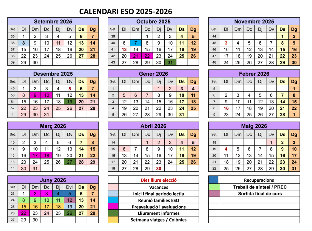 Calendari del curs