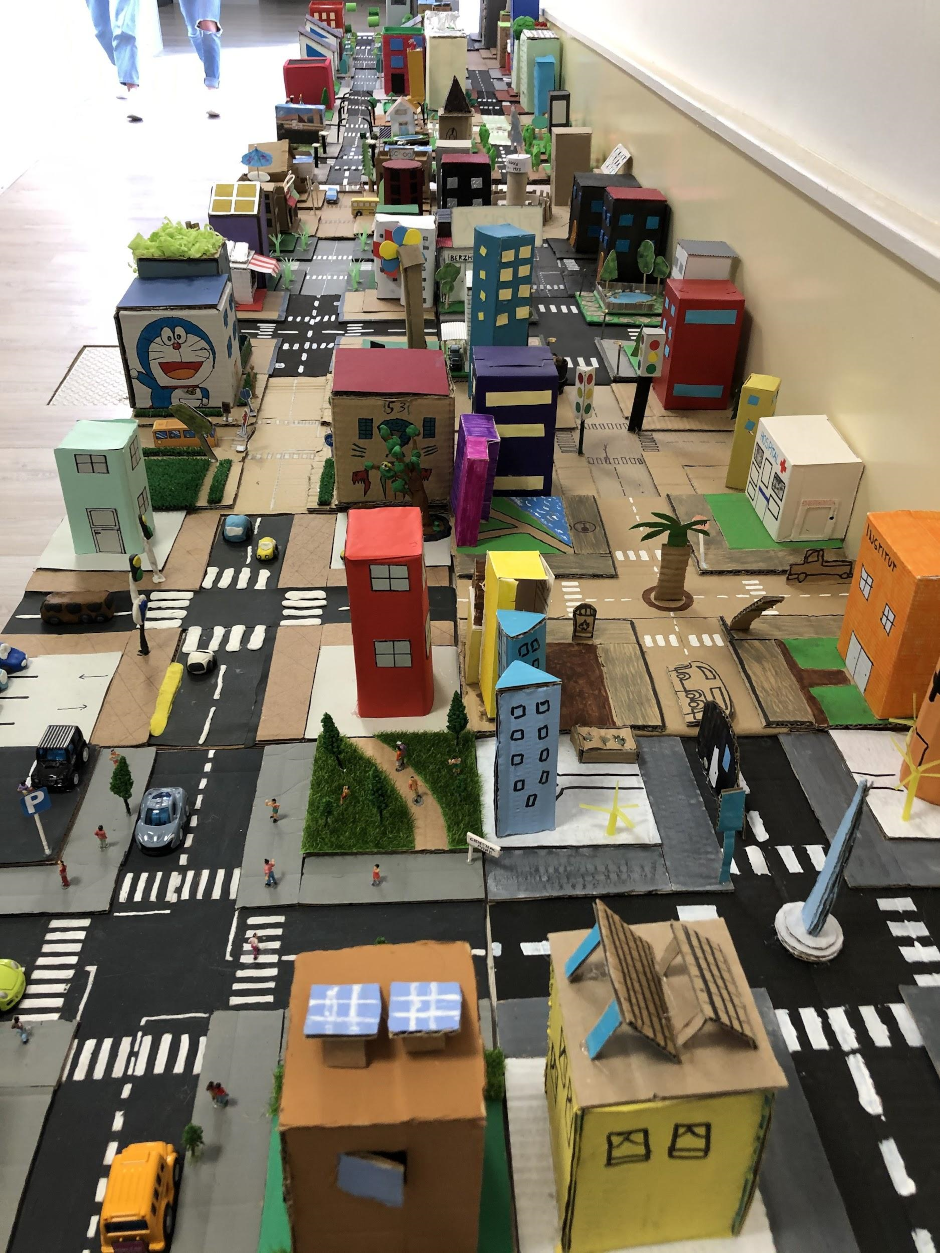 El projecte s’ha treballat a la matèria de Tecnologia i ha estat idea de la Marta Masdeu, tutora de 1r ESO D i professora de tecnologia i de projectes. Abans d’exposar les maquetes, els alumnes han anat per classes al pati i les han posat per ordre de llista de la persona que les ha fet. A continuació, cadascú ha interpretat un paper per a la ciutat, s’han fet grups i hi havia veïns, arquitectes, l’alcalde…