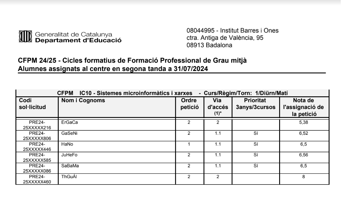 CFPM 24/25 Feu un comentari / Per Admin BiO / 31/07/2024 / CFGM SMX General Portada Cicles formatius de Formació Professional de Grau mitjà Alumnes assignats al centre en segona tanda a 31/07/2024