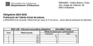 Obligatòria 2024-2025 Publicació de l’oferta inicial de placesPer Admin BiO / 05/03/2024 / ESO General Portada