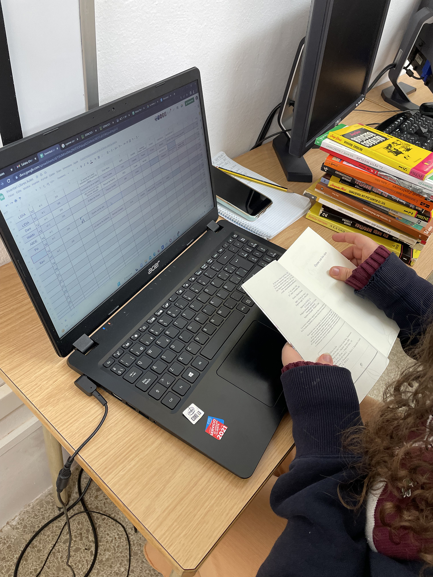 Estem a la 1ª fase col.laborant amb el departament de Llengües fem l’inventari del llibres que hi ha en algunes aules.