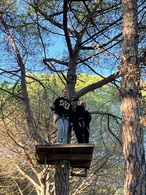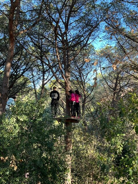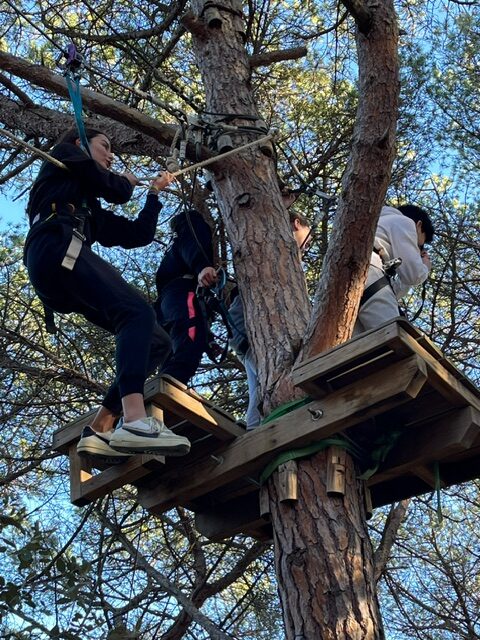 L’alumnat de 1r de batxillerat han gaudit d’una jornada fantàstica al Bosc Vertical al Parc Forestal. Hi ha hagut moments per riure i demostrar les seves habilitats penjats dels arbres. I s’han pogut conèixer una mica més tots plegats.