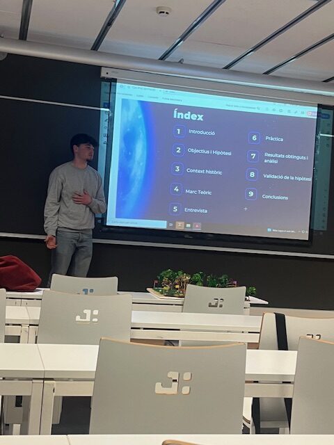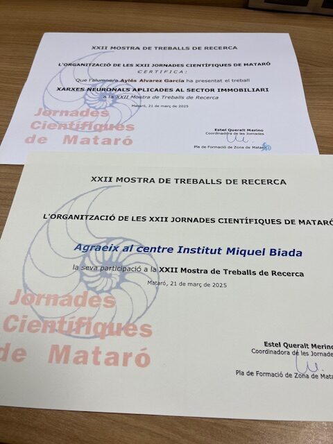 Representant al nostre centre dos dels nostres alumnes de 2n de batxillerat, l’Aylés Álvarez i l’Iker Carmona van presentar els seus treballs de recerca, juntament amb altres estudiants de diferents centres de Mataró.