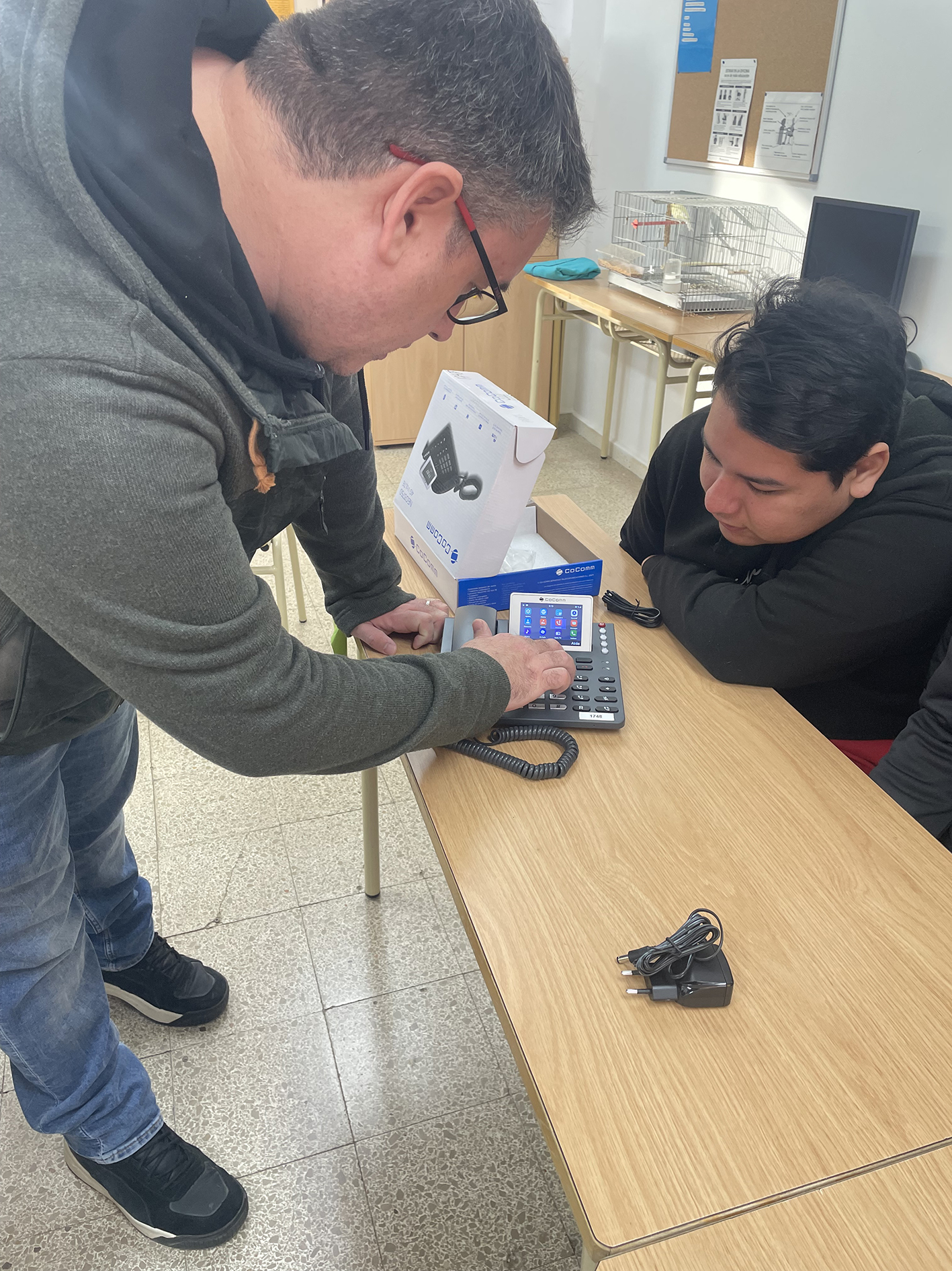Un dels nostres conserges, en Juanjo, ha vingut a explicar-nos el funcionament dels equips telefònics que es fan servir al centre.