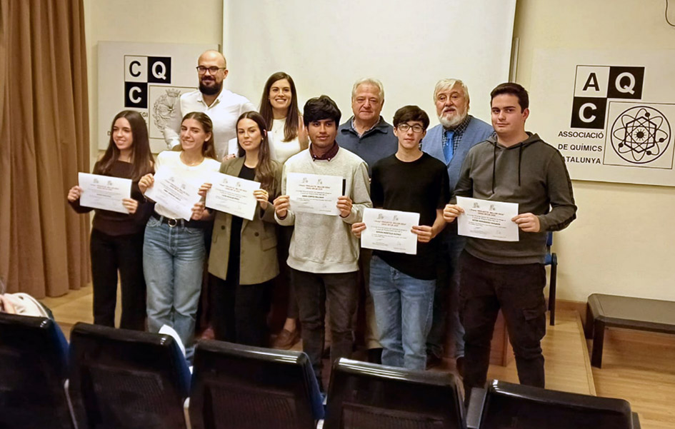 El dimarts 18 de novembre, els alumnes Lucia Aguilar, Abril Amador, Jordi Cortez, Aitor Hernández, Adrián Montilla i Maria Roig, en representació del Departament de Química de l’Institut Miquel Biada, juntament amb els professors Arnau Canelles, Ramon Grau, Cristina Ramírez i la coordinadora pedagògica d’FP, Maite Villaverde, van assistir al Col·legi Oficial de Químics de Catalunya per recollir el 1r Premi al “Projecte Millor Idea” de Cicles Formatius de Grau Mitjà.