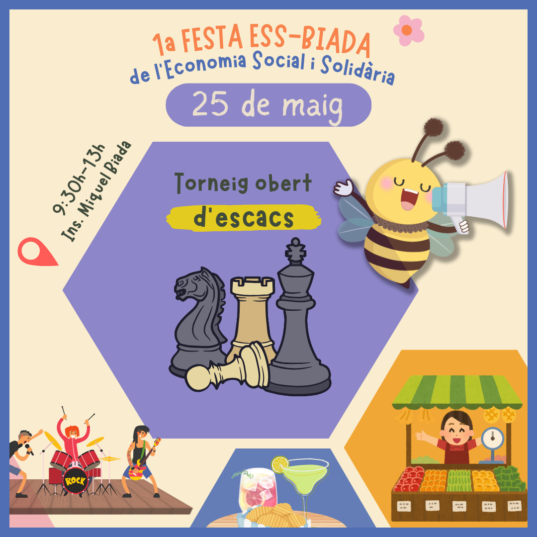 Hi haurà un torneig obert d’escacs, concerts del projecte “Rockin”, Mercat d’Artesanies de les cooperatives de 1r i de vivers, de la Fundació El Maresme, vermut solidari… i moltes sorpreses més.