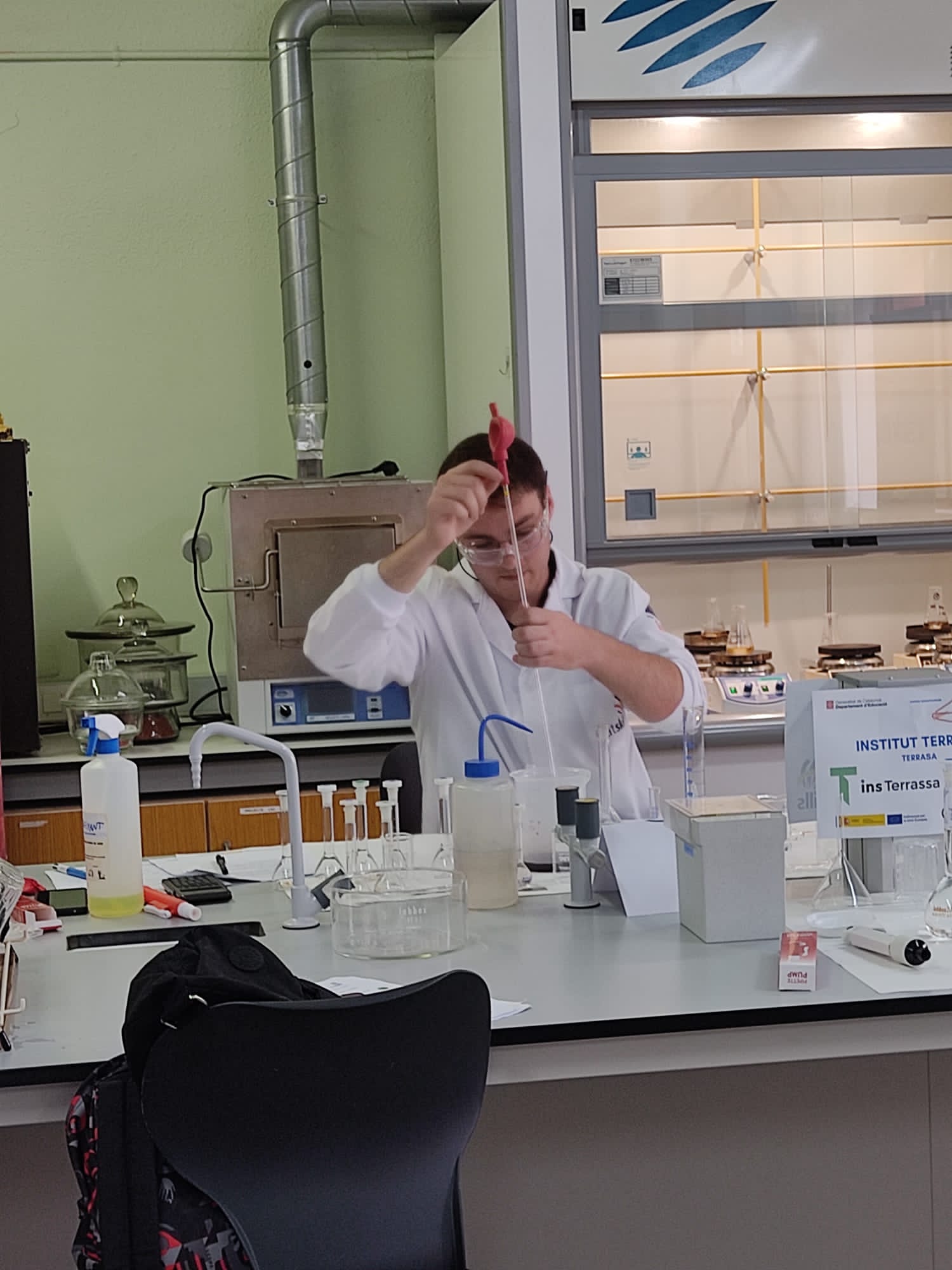 Per altra banda, en Martí Marrot de 1r del Cicle Superior d’Anàlisi i control de qualitat ens va representar a l’skill 52 – Laboratori d’anàlisi química, que es va organitzar a l’Institut Montilivi de Girona. Van participar 9 Instituts i la prova va consistir en determinar quantitativament el ferro que hi havia en un fertilitzant per plantes.