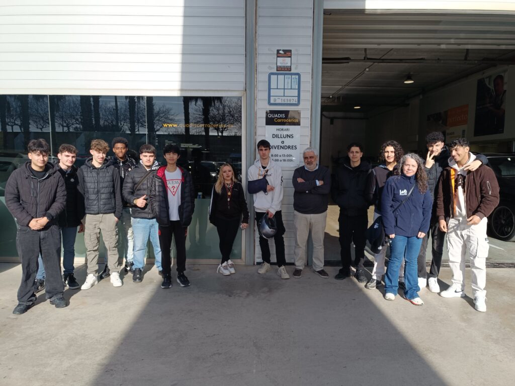 A més, l’alumnat de Carrosseria ha visitat les instal·lacions de Cabrera de Mar, on han pogut veure el dia a dia d’un taller, conèixer els processos de treball i parlar amb estudiants de 2n curs que ja estan fent l’FP Dual intensiva amb Quadis.
