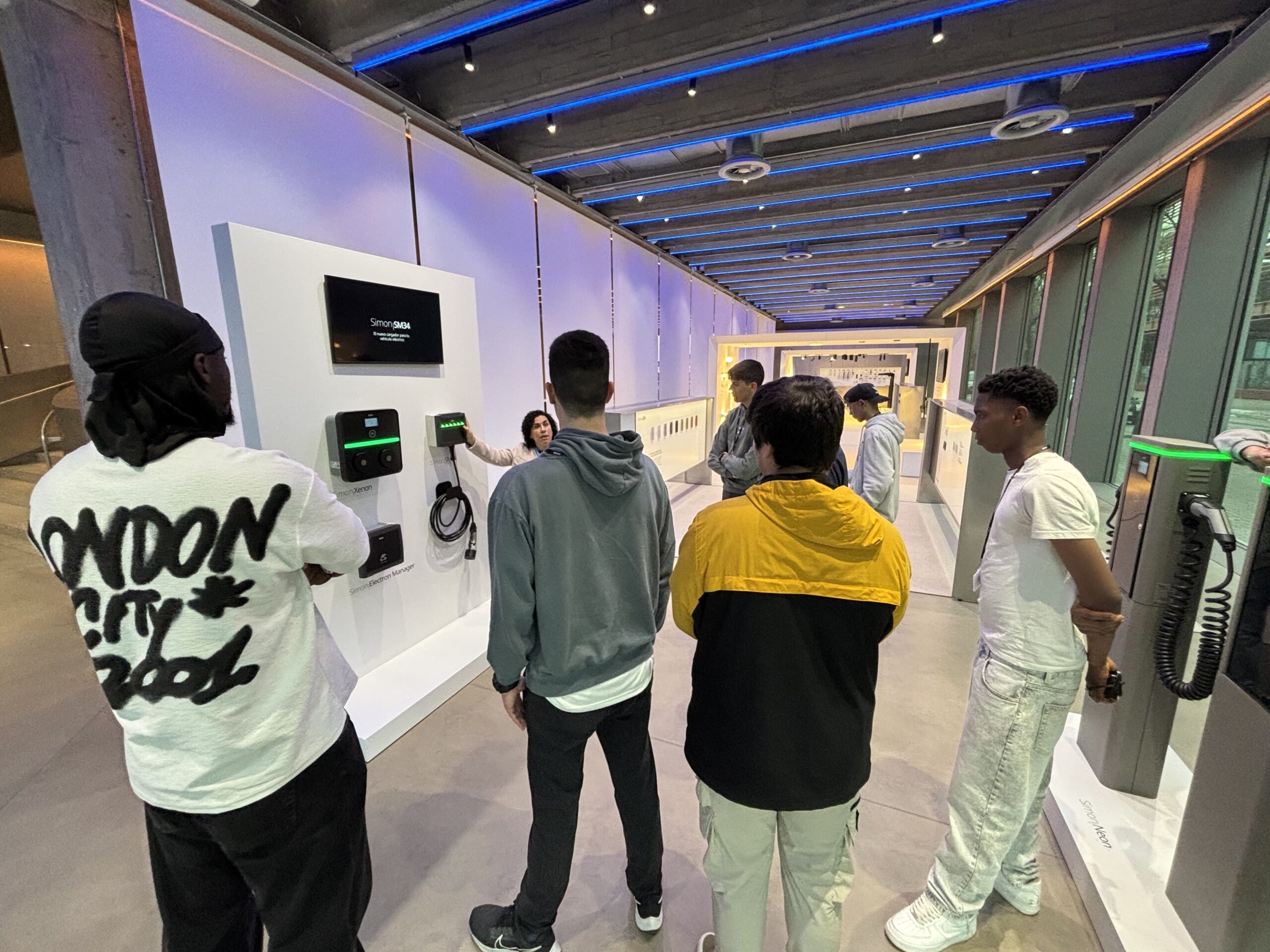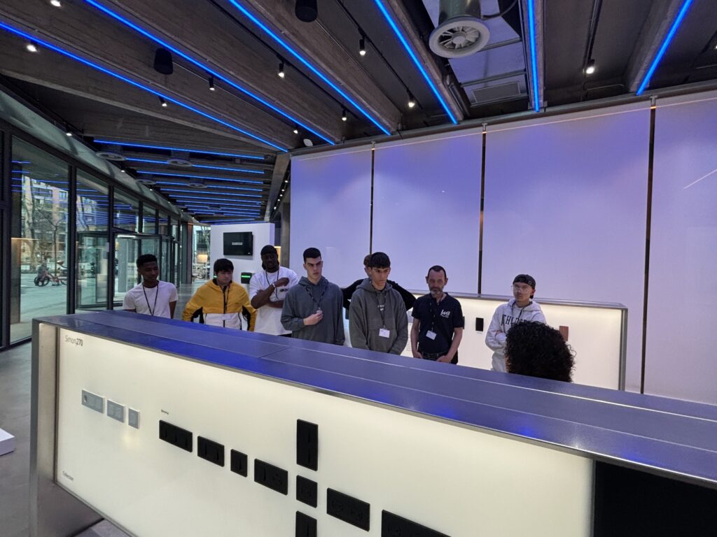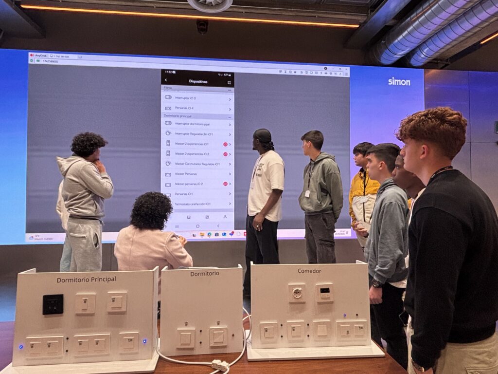 La formadora, Carolina Fernández ens va fer una ruta pel showroom i després una classe sobre els seus sistemes domòtics i fins i tot l’alumnat van poder programar amb un telèfon mòbil, els sistemes domòtics que van posar al seu abast.