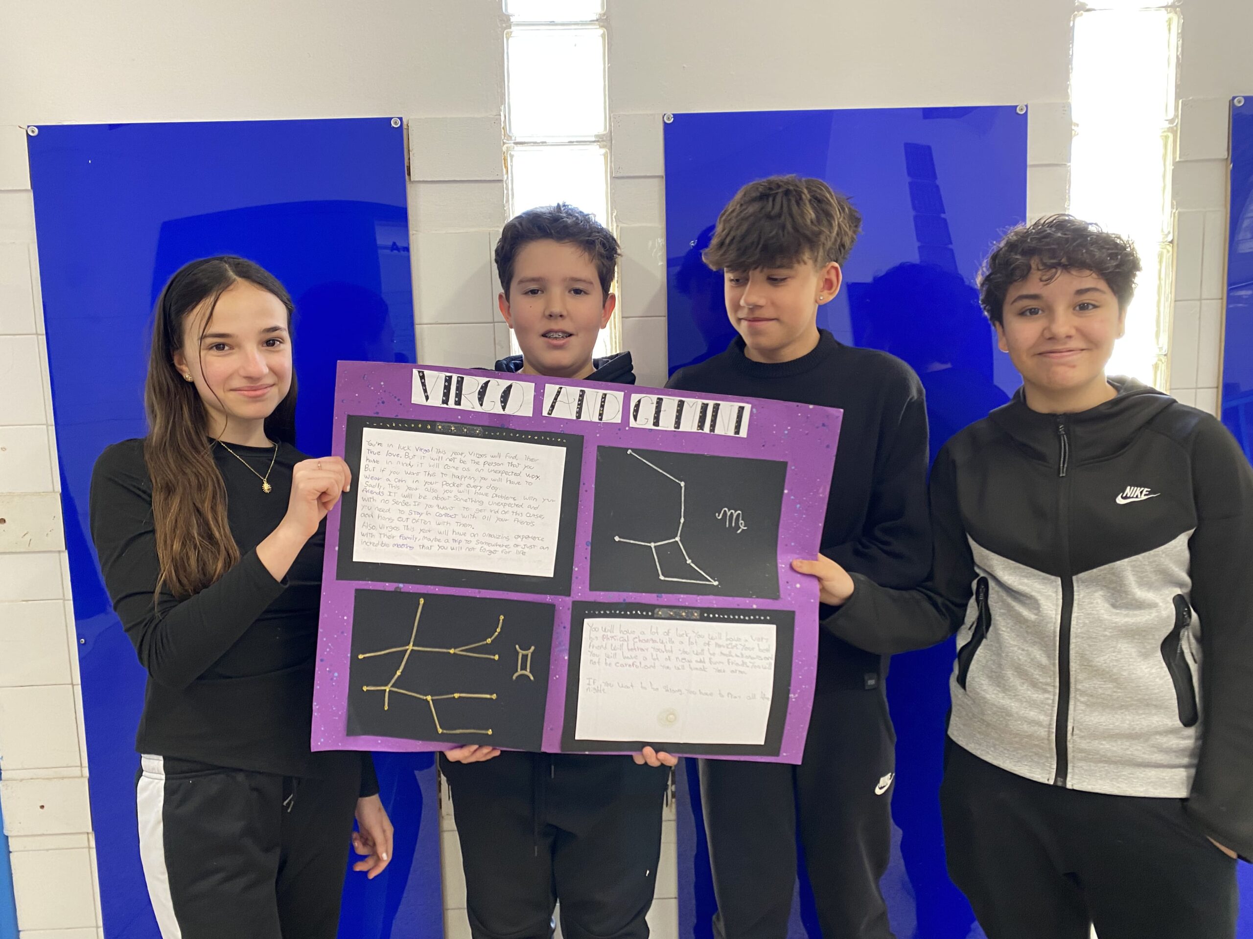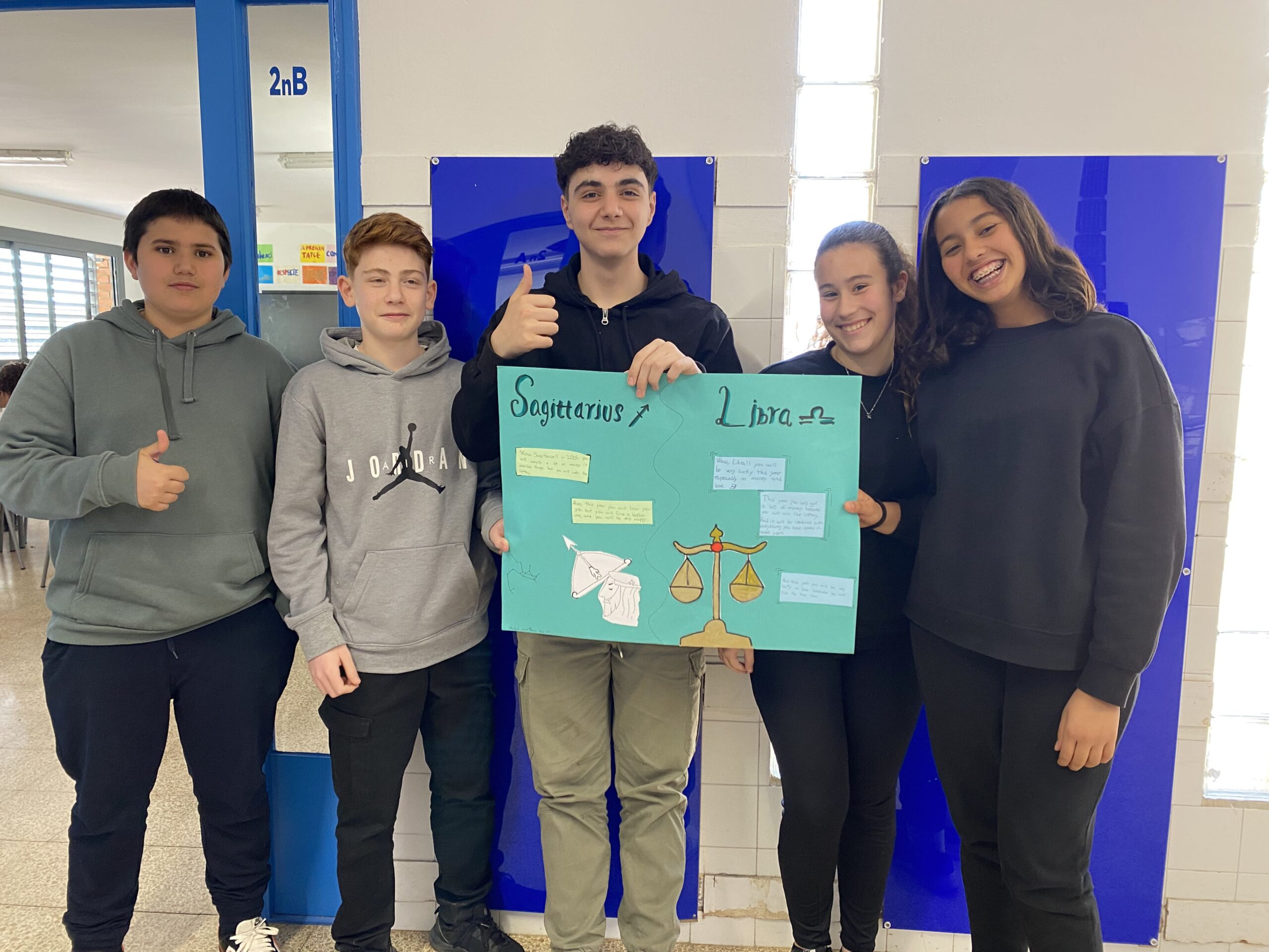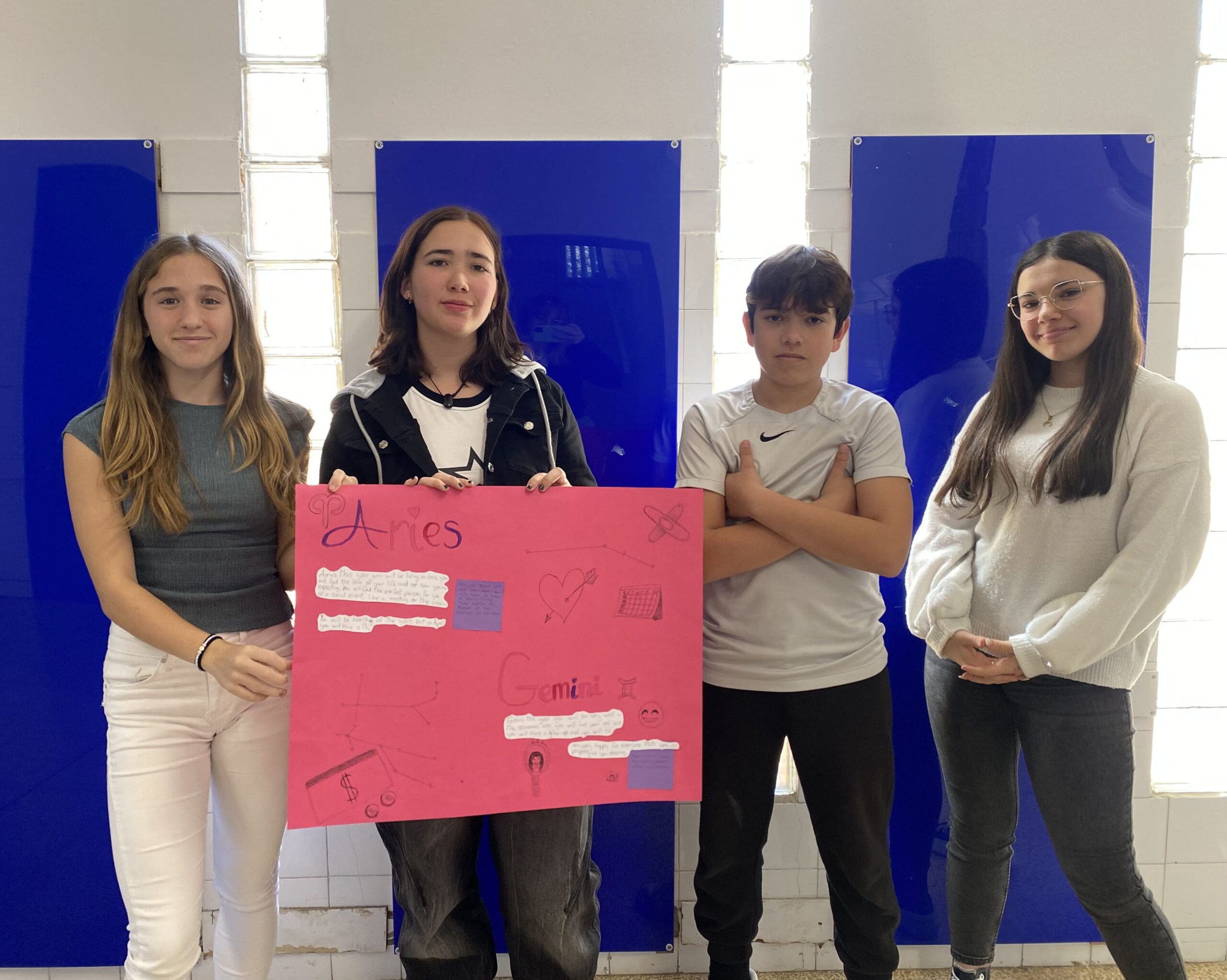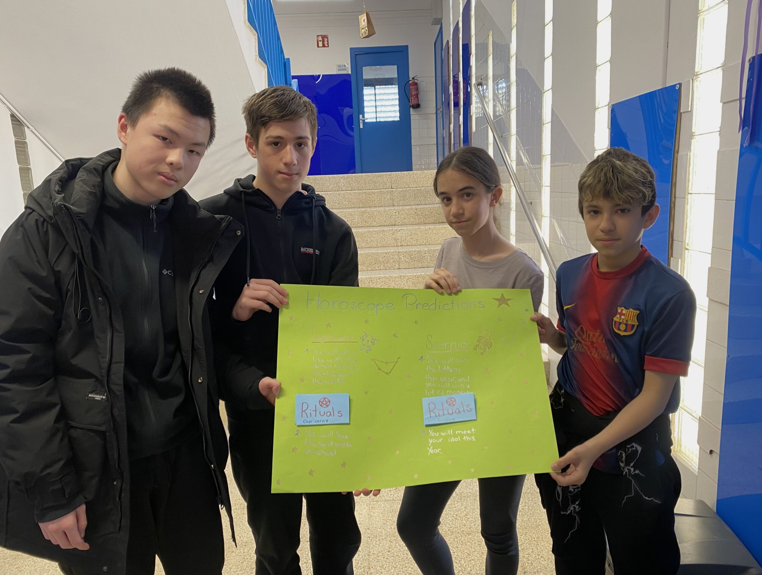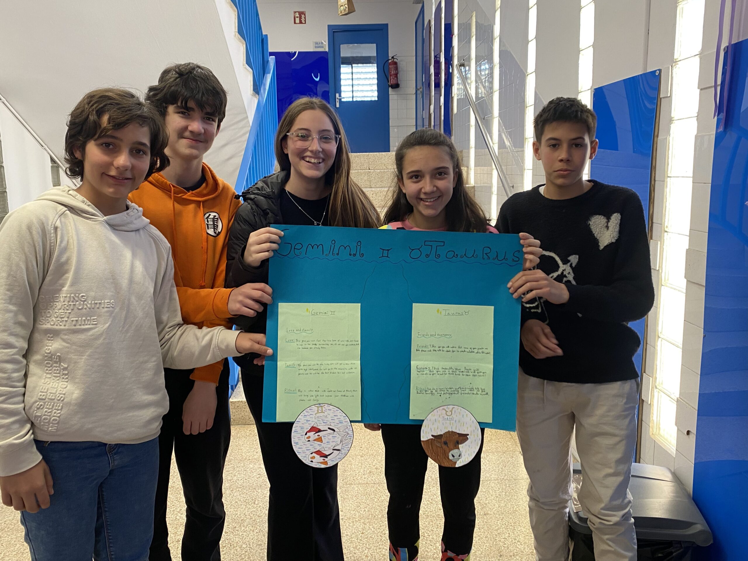 Els primers mesos, vam explorar els diferents horòscops i la seva fiabilitat. Vam investigar sobre les característiques dels nostres signes i comentar-ne la seva fiabilitat. També vam treballar els temps verbals de futur “will” i “be going to”. Per tancar el projecte, vam crear un pòster amb prediccions inventades i rituals sobre dos dels signes del zodíac. Va ser una manera molt divertida i entretinguda de practicar els temps de futur!