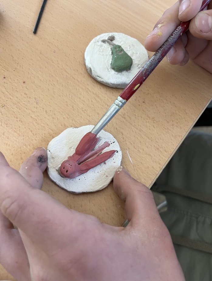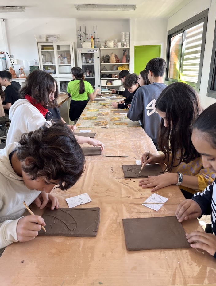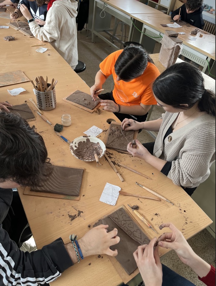 Al final de l’EX amb el mural ja plantejat ens vam posar a fer-lo amb ceràmica. Vam repartir el dibuix del mural en 20 part per així cadascun tingues un tros per fer del mural, per després ajuntar-lo tot. Hem estat diverses sessions fent les nostres rajoles, que cada rajola havia de representar alguna cosa sexual, però de manera indirecta. Finalment, pintarem les nostres rajoles i les portarem a l’espai de la romànica per representar la nostra visió del que hem après i desenvolupat amb el tema sexual, representant l’amor, la protecció i la confiança.