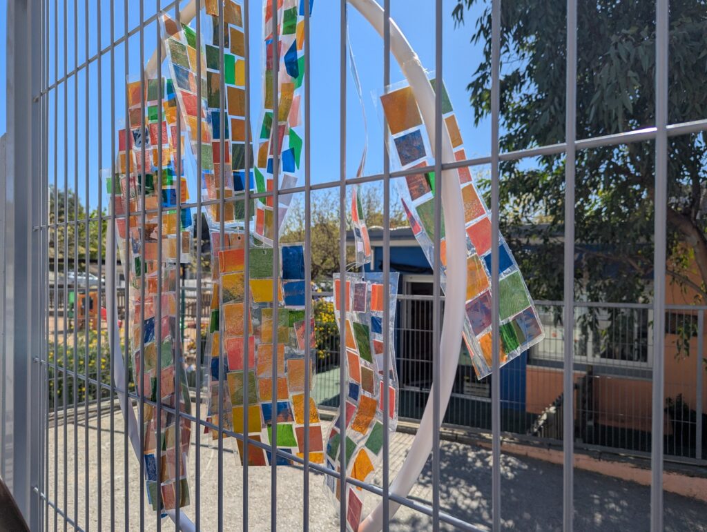 En aquest marc, hem decorat la tanca del centre i hem elaborat un mosaic col·lectiu amb motius gaudinians, fruit del treball compartit.