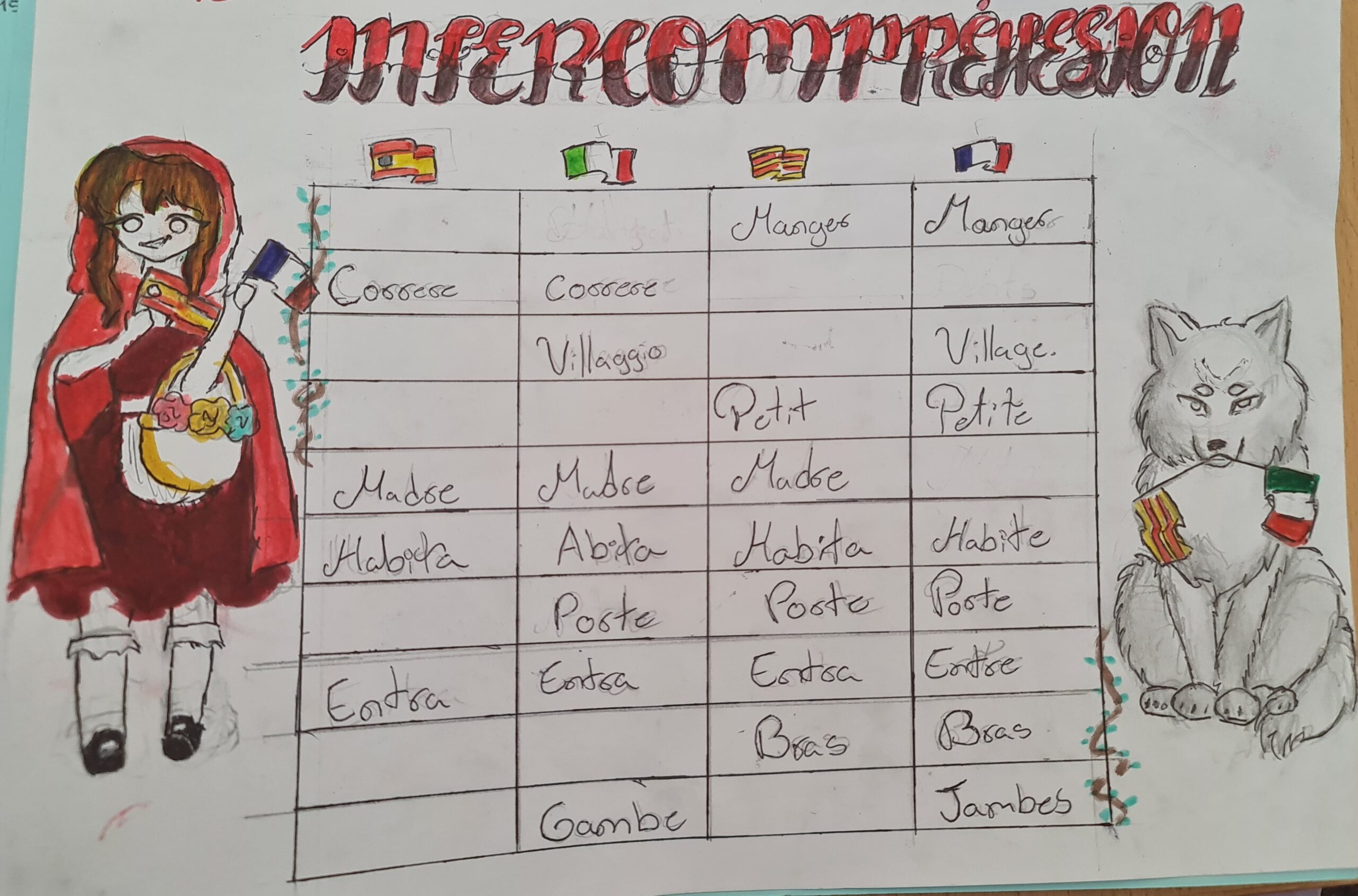 En aquest darrer trimestre, l’alumnat de 1er d’ESO a francès ha treballat la intercomprensió, que és un procés de comunicació entre persones amb 2 llengües de la mateixa família. El principal objectiu de realitzar aquest projecte és, en primer lloc, aprofitar els coneixements de la llengua materna (el català o castellà) per aprendre el francès o altres llengües romàniques. I, en segon lloc, demostrar que comprendre el francès és més fàcil del que els alumnes pensen. Els alumnes han dut a terme aquest projecte a partir de l’anàlisi d’un conte molt popular, “La Caputxeta vermella”, en castellà, català, francès i italià. Han gaudit molt i han après que el francès s’assembla molt al català i l’italià al castellà i que totes les llengües romàniques són fàcils d’aprendre i molt interessants.
