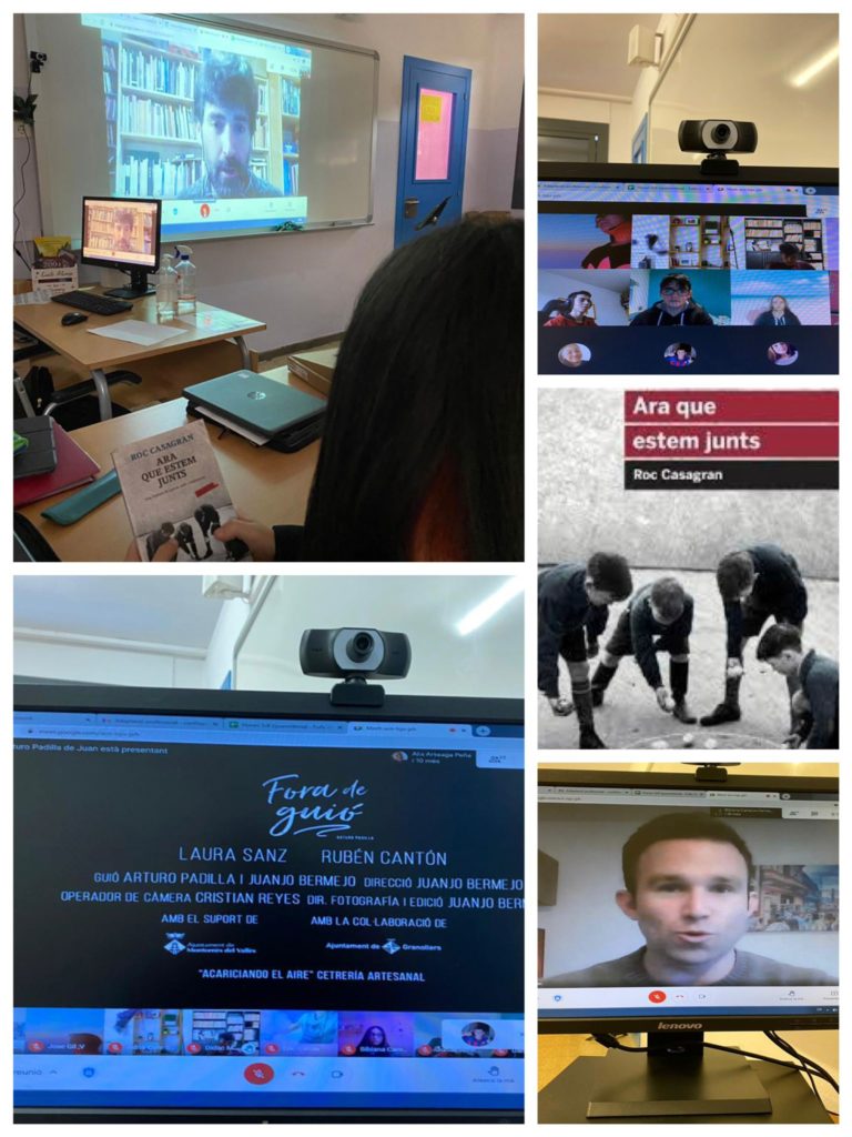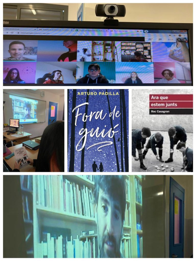 El dia 10 de febrer a 3r d’ESO hem acabat el club de lectura d’una manera molt especial: la conversa amb dos dels escriptors de qui hem llegit novel·les. Arturo Padilla ha compartit virtualment el confinament de 3r B amb la presentació de Fora de guió i Roc Casagran Ara que estem junts amb 3r A dins l’aula.