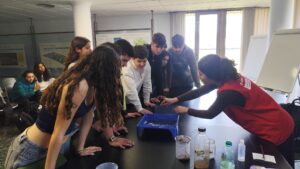 L’alumnat va anar amb tren fins a arribar a Montcada, on va seguir a peu fins a arribar a l’EDAR. Allà van entrar a l’edifici per fer un taller. En primer lloc, l’educadora va explicar com arriba l’aigua a l’EDAR i quin procés segueix l’aigua quan arriba a l’estació. En segon lloc, va fer un experiment mesclant alguns productes, de manera que l’alumnat va poder veure a petita escala el que fan amb les aigües residuals per netejar-les.