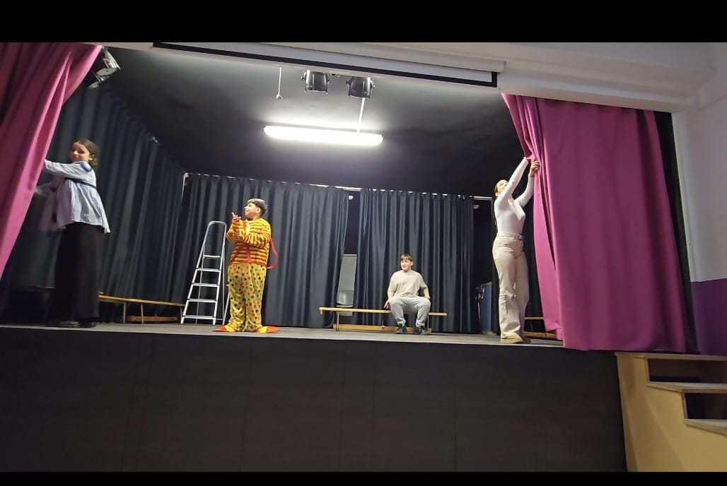 Al mateix temps, a classe hem fet un projecte que es diu Lo tuyo es puro teatro. Durant diverses setmanes he treballat les característiques del teatre i més tard hem après a com fer un guió i diàlegs. Quan vam acabar tot això ens vam posar per grups de 4-5 persones on primer vam representar una història amb introducció, nus i desenllaç. Després d’això, vam passar la història a un diàleg on en acabat hauríem de representar-la en una obra de teatre, la vam estar preparant bastant temps i la vam fer al teatre, on es valoraria tota la teoria treballada a classe. La millor obra de 1r d’ESO guanyarà un premi de Sant Jordi.