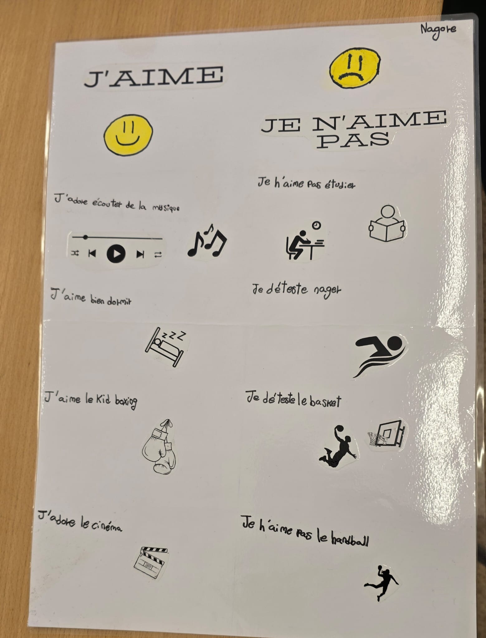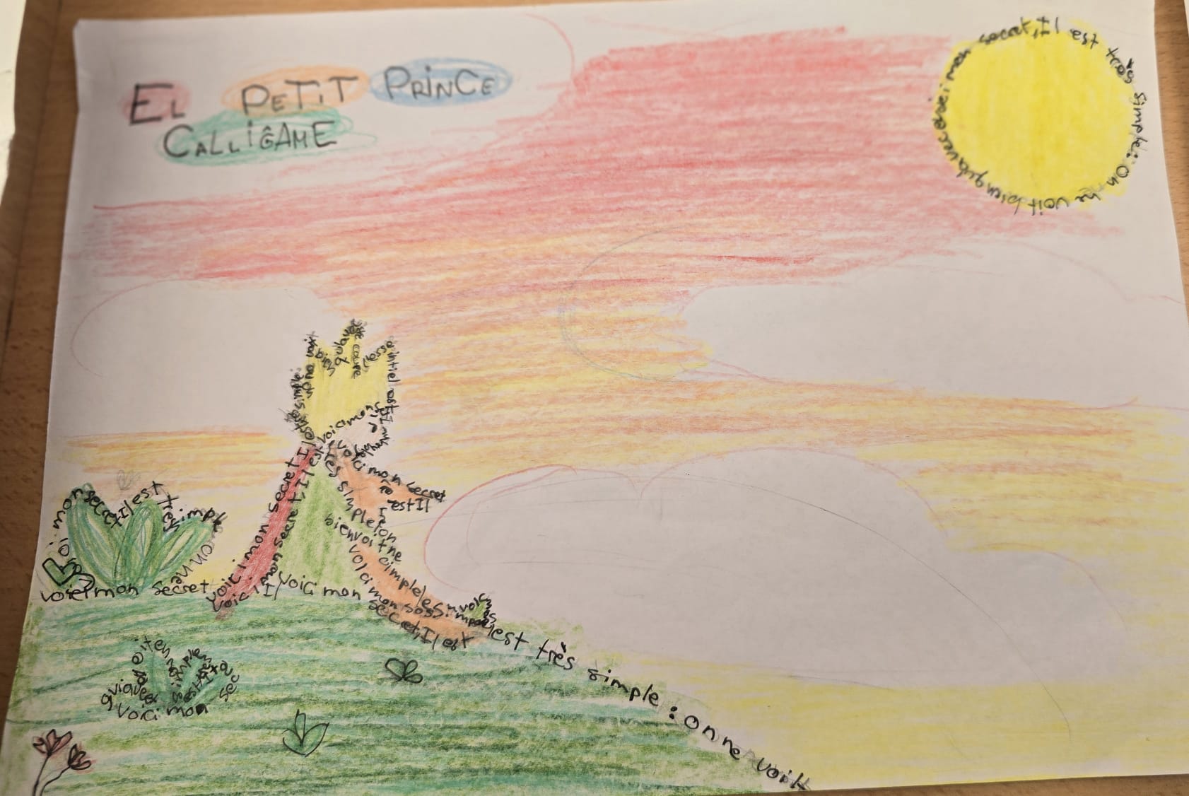 Per finalitzar aquest projecte hem fet un joc a classe que es diu qui és qui. L’objectiu era intentar esbrinar el personatge fent preguntes respecte al físic, caràcter i hobbies. A més, hem fet una exposició oral del que ens agrada i el que no ens agrada i així hem après vocabulari i diferents verbs per expressar els nostres gustos. Per finalitzar el trimestre, hem vist una pel·lícula de comèdia que es diu Comme un chef. Abans de marxar de vacances de Setmana Santa, hem treballat la lectura del Petit prince i hem fet un cal·ligrama que participarà en el concurs de Sant Jordi.