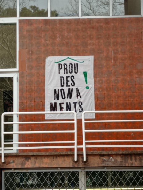En la setmana en que les plataformes pel dret a l’habitatge van convocar diverses manifestacions arreu, durant l’hora de pati un grup d’alumnes i professors del Bosc van elaborar i penjar a l’institut una pancarta al·lusiva a aquesta reivindicació. L’objectiu és conscienciar el professorat, l’alumnat i les famílies de la importància d’aquest problema que ens afecta a tots.
