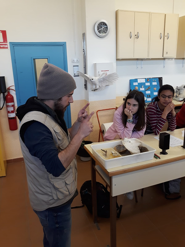 En Marçal de l’Associació ambiental Ursus, va portar moltes egagròpiles de gamarús, un mussol petit de la zona del Maresme. També va portar divers material com ales d’òliba, urpes d’algunes rapinyaires i fins i tot un mussol nival ( de color blanc).