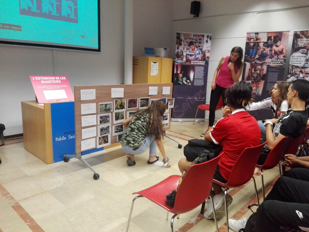 El passat dimecres 25 de setembre de 2019 els alumnes d’Emprenedoria de 4t d’ESO van participar en una xerrada-taller a la Biblioteca Francesc Boix del barri. Les converses i les activitats convidaven a reflexionar sobre la producció i la comercialització en el ram tèxtil des d’una perspectiva ètica.