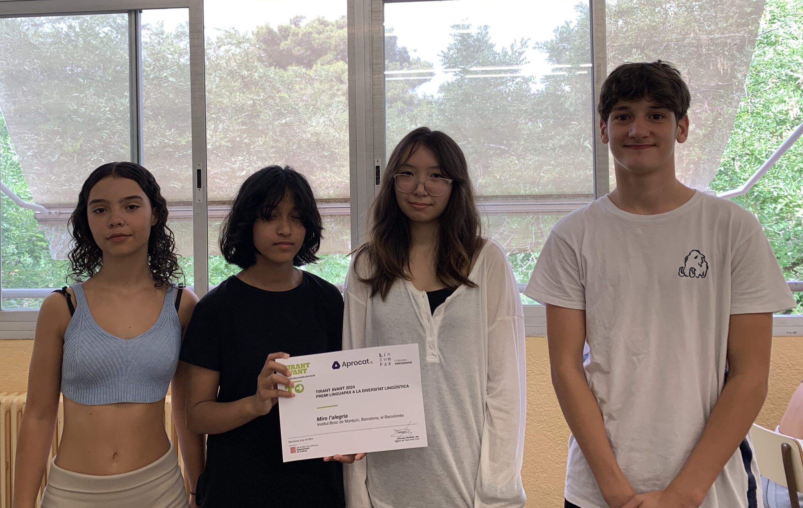 Per la seva banda, l’obra Miro l’alegria, realitzada per alumnat de 2n ESO, ha rebut el Premi  Linguapax a la diversitat lingüística per la seva creació. La proposta es vincula a la V Mostra de Poesia Multilingüe organitzada per l’Escola de Bambú de Casa Àsia.