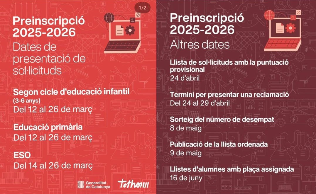 Consulteu les dates més rellevants del procés de prinscripció del curs 2025-26. Us fem arribar també el calendari de xerrades […]