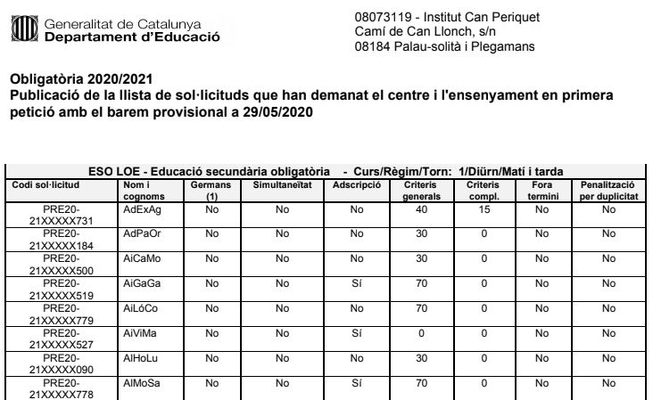 Llistes provisionals amb els barems de la preinscripció Llegeix més »