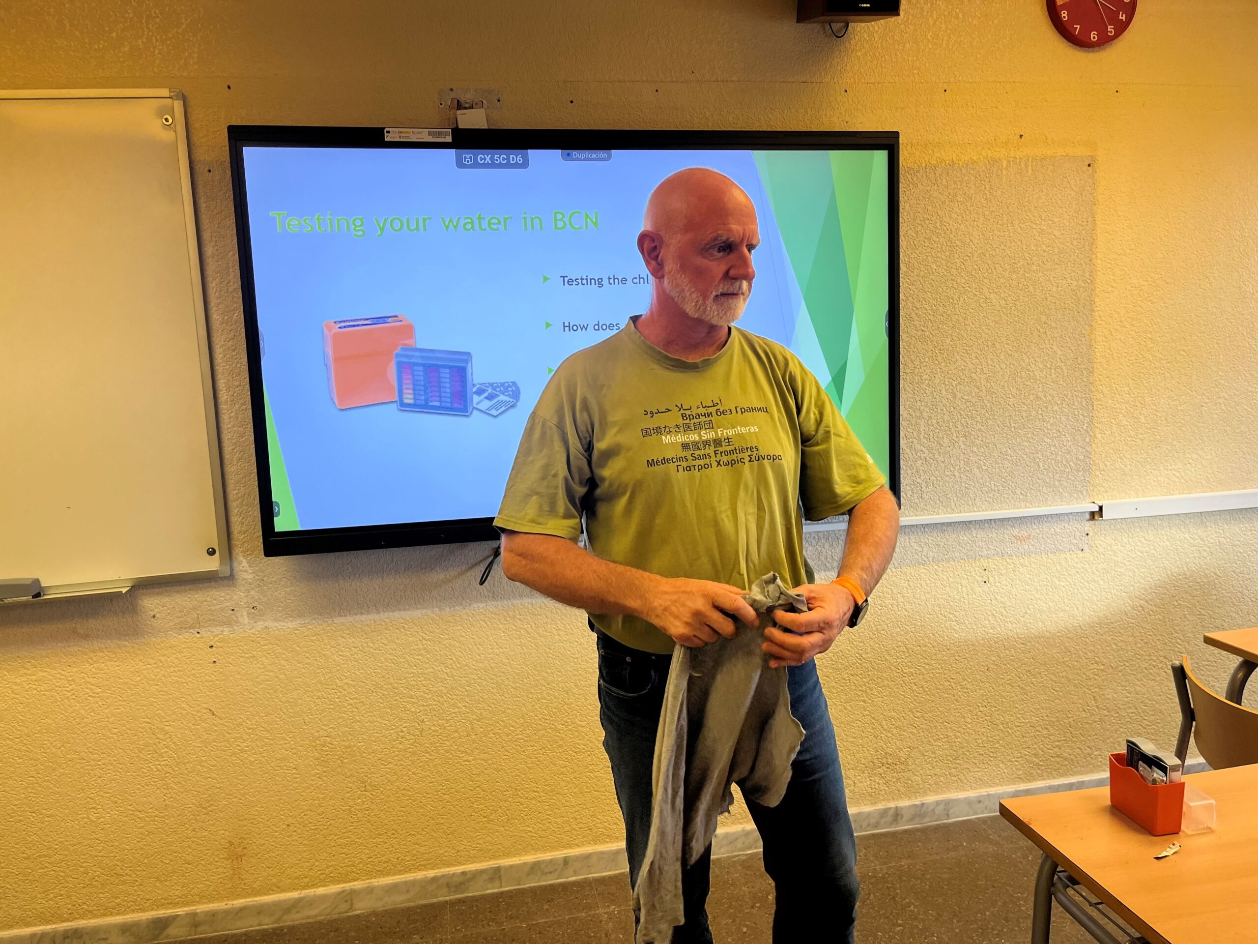 In the second part of his presentation the students of 4 ESO participated in a workshop where they experienced how to sanitize water, a process that is necessary to survive in areas with no purified water.