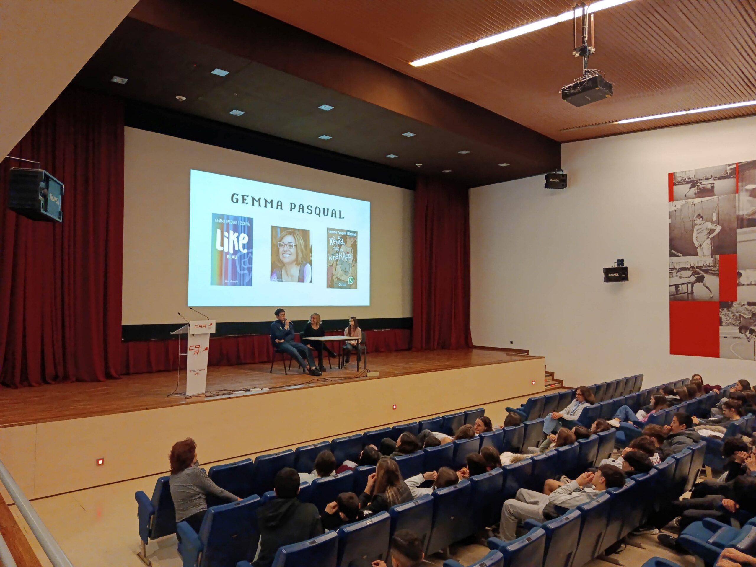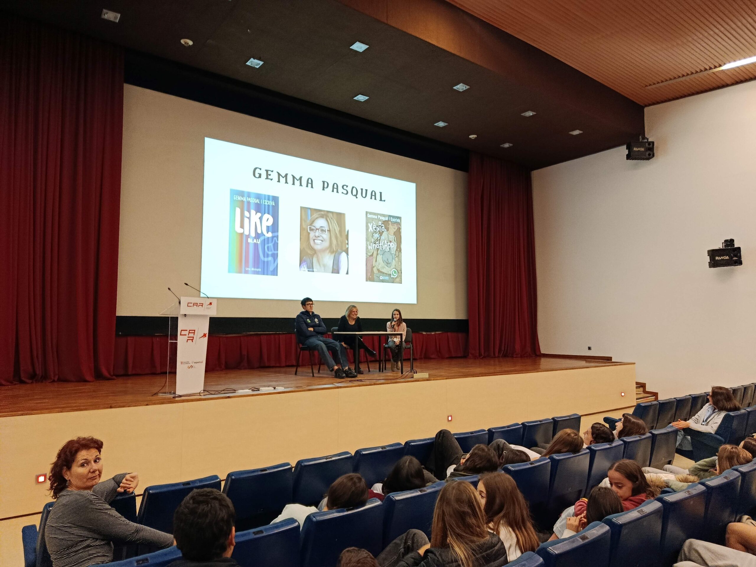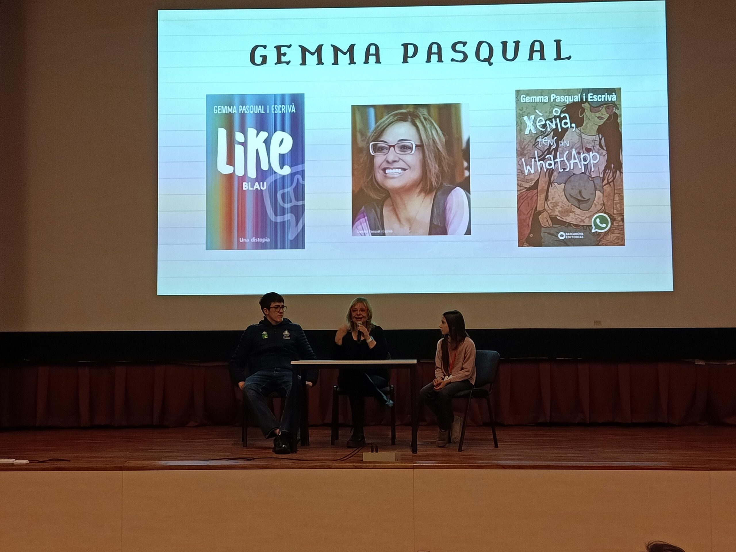 Aquest matí ens ha visitat l’escriptora valenciana Gemma Pasqual. Ha fet una xerrada per tot l’alumnat d’ESO sobre les novel·les Like Blau i Xènia, tens un Whatsapp, escrites per ella i que formen part de les lectures de l’assignatura de Llengua Catalana i Literatura de 1r, 2n i 3r d’ESO.