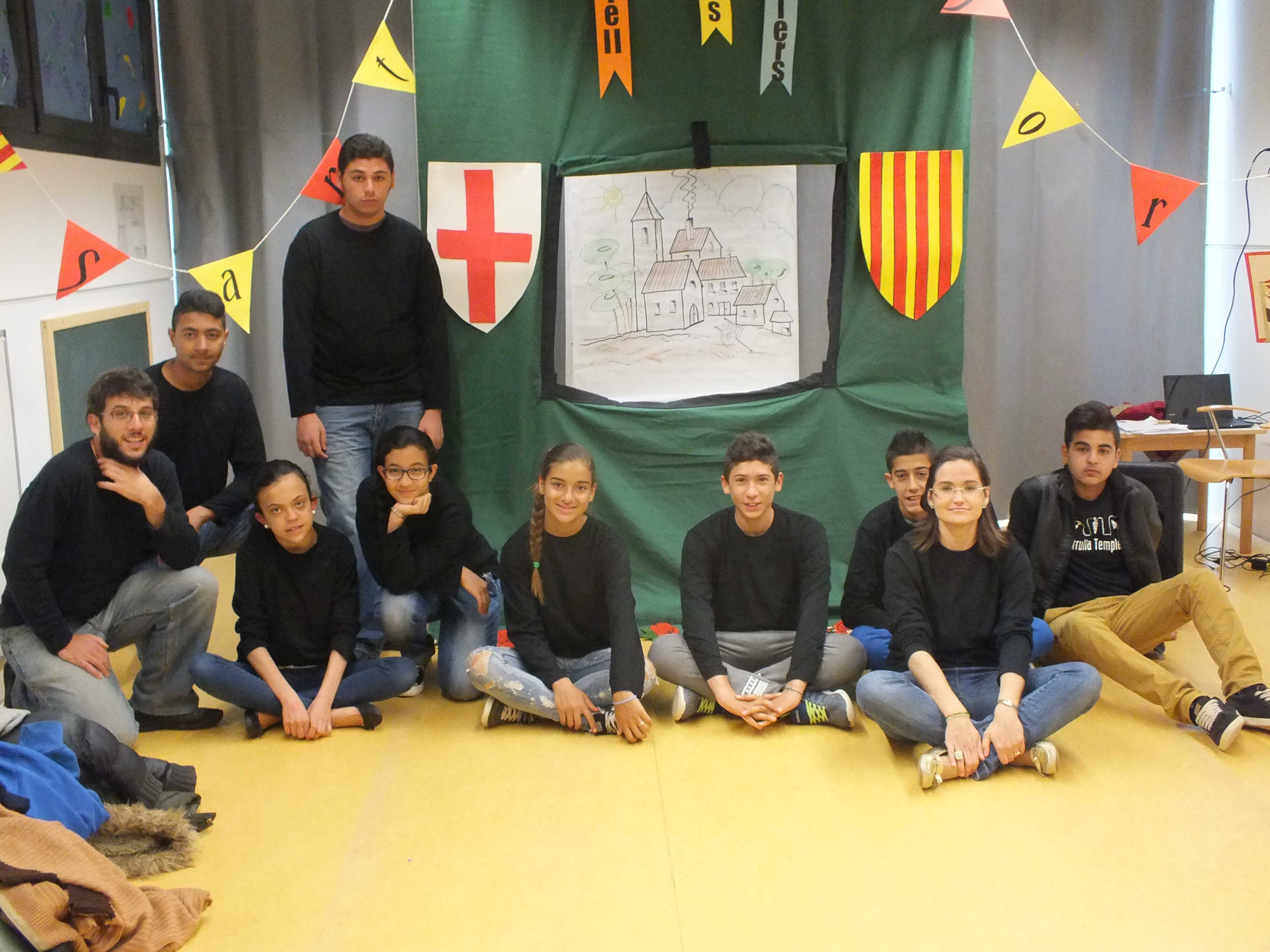 Un any més, vam celebrar la diada de Sant Jordi amb una representació dramatitzada, aquesta vegada de titelles. Un grupet de 8 nois i noies d’ESO de la Central, dirigits per la Meritxell Olivan, van preparar La llegenda de Sant Jordi  i se’n van anar de bolos. Amb l’ajut de l’alumnat de la Patrulla Templers, dirigits pel Miguel Pérez, durant la setmana del 18 al 22 d’abril, vam fer l’obra a l’Escola Terres de Ponent, a l’Escola Bressol Municipal Germans Grimm, a l’Escola Bressol Municipal Parc de Gardeny i a l’Escola Magí Morera. Un bon nombre de petits i petites bocabadats van seguir la representació i van aplaudir els nostres artistes.