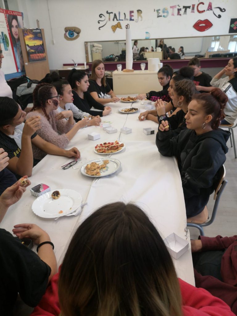 Els alumnes de formació profesional bàsica Peluqueria i Estètica han realitzat un projecte transversal per a treballar la Castanyada. Ha finalitzat amb l’elaboració dels típics panellets i l’últim dia hem gaudit tots junts d’una bona estona menjant-nos-els.