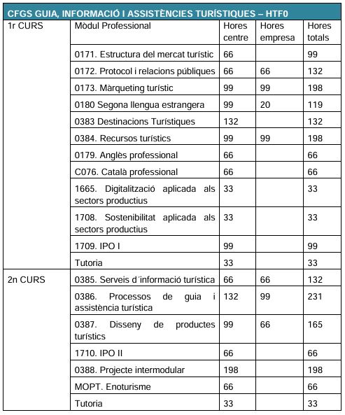- CFGS Guia, informació i assistències turístiques