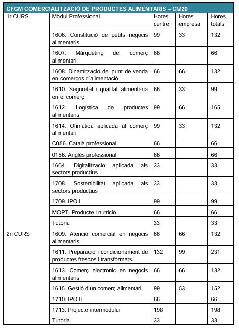 Titulació: Tècnic/a en Comercialització de productes alimentaris