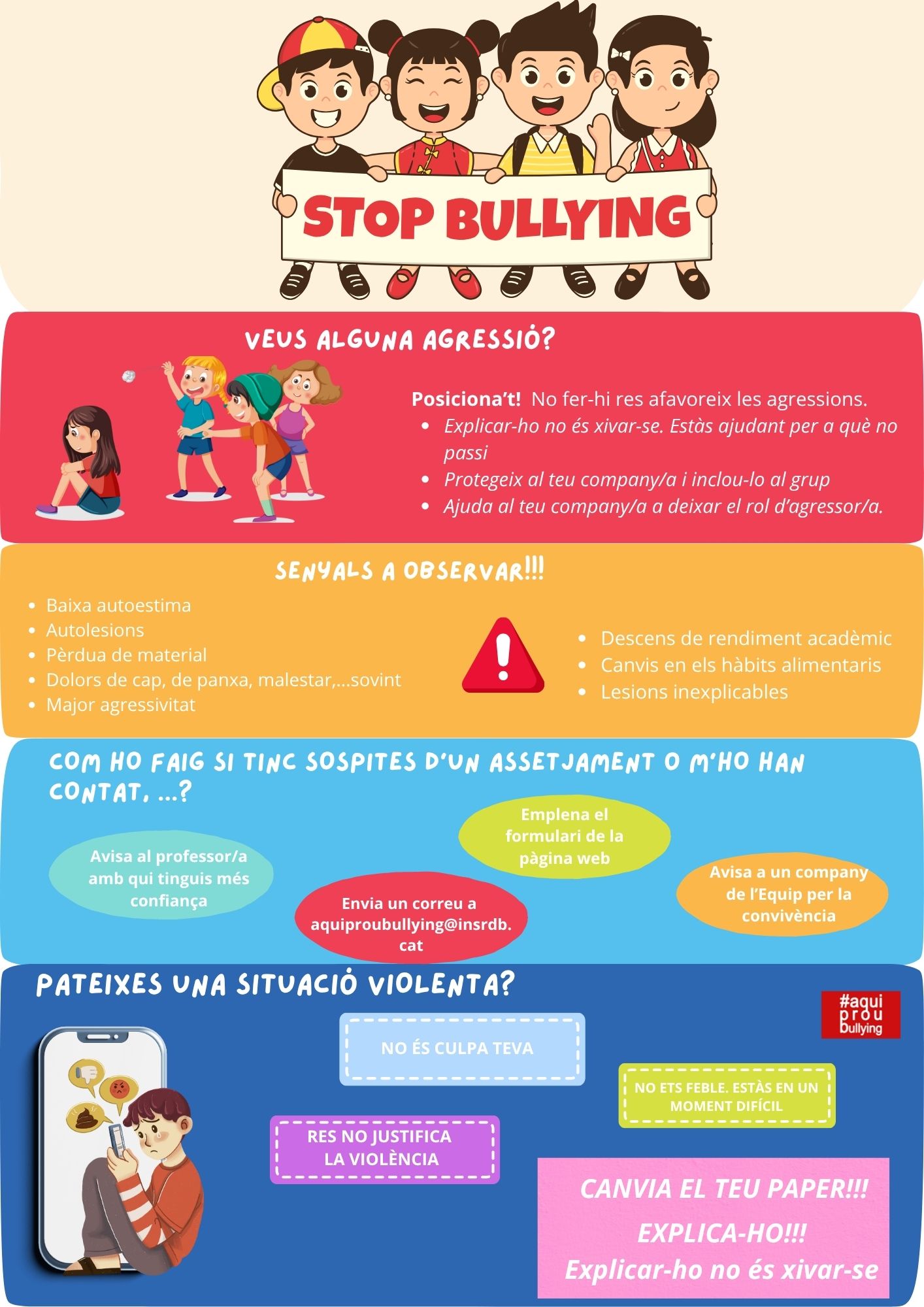 Qualsevol membre de la comunitat educativa pot informar sobre una situació possible d’assetjament escolar mitjançant el següent enllaç: