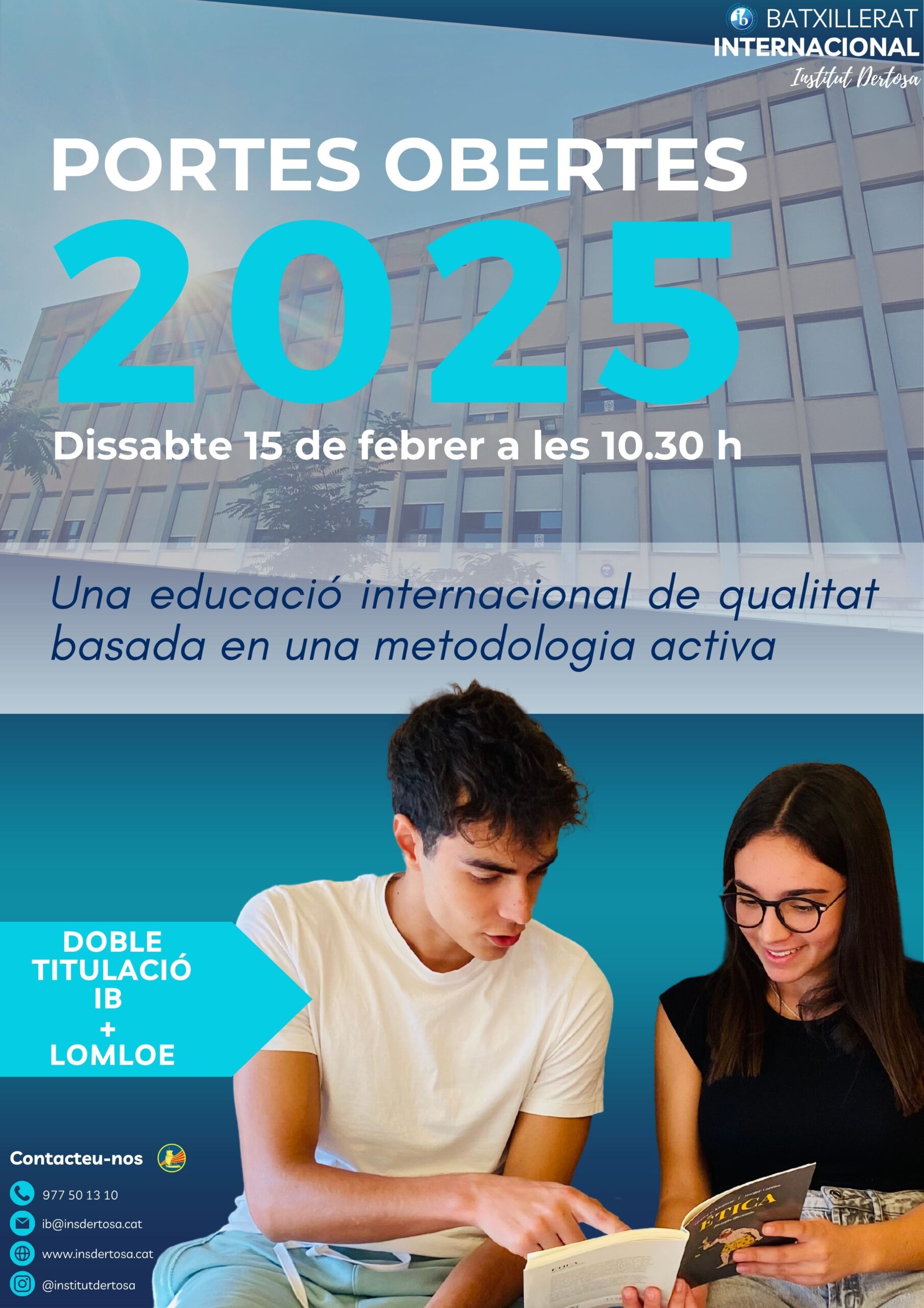 El dissabte 15 de febrer a les 10.30 h celebrarem al jornada de portes obertes del Batxilelrat Internacional. Trobareu tota la informació relativa a la jornada així com el formulari d’inscripció al web del Batxillerat Internacional.