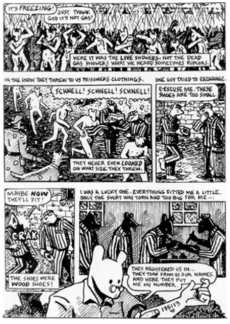L’autor, Art Spiegelman ens relata com el seu pare va sobreviure al camp de concentració d’Auswitch, i ho fa d’una forma entranyable i també terrible. Els personatges de l’obra són ratolins (jueus), gats (nazis), porcs (polonesos)… El resultat és una obra crua, commovedora i molt personal, atributs que la van fer l’única en el seu gènere guanyadora del Premi Pulitzer.