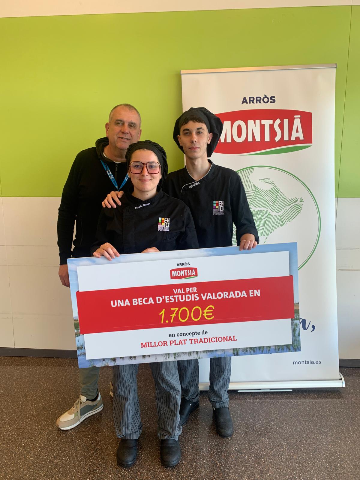 Agrair a l’empresa Montsià la formació i col·laboració que realitza a les diferents escoles d’Hoteleria i que resulta tan necessària pels nostres alumnes. L’alumnat finalista ha sigut dotat d’una beca de 1.700 euros en concepte de beca d’estudis per a la millor recepta tradicional.