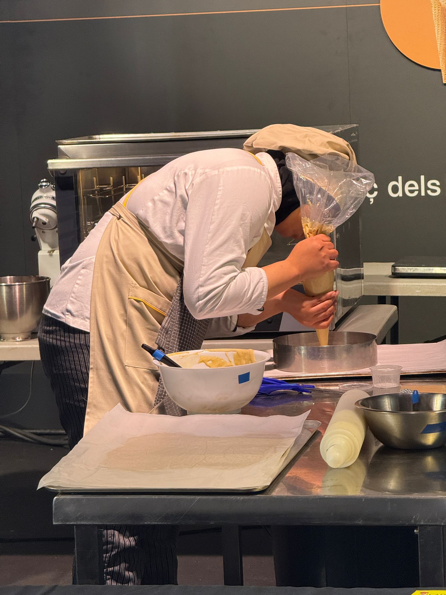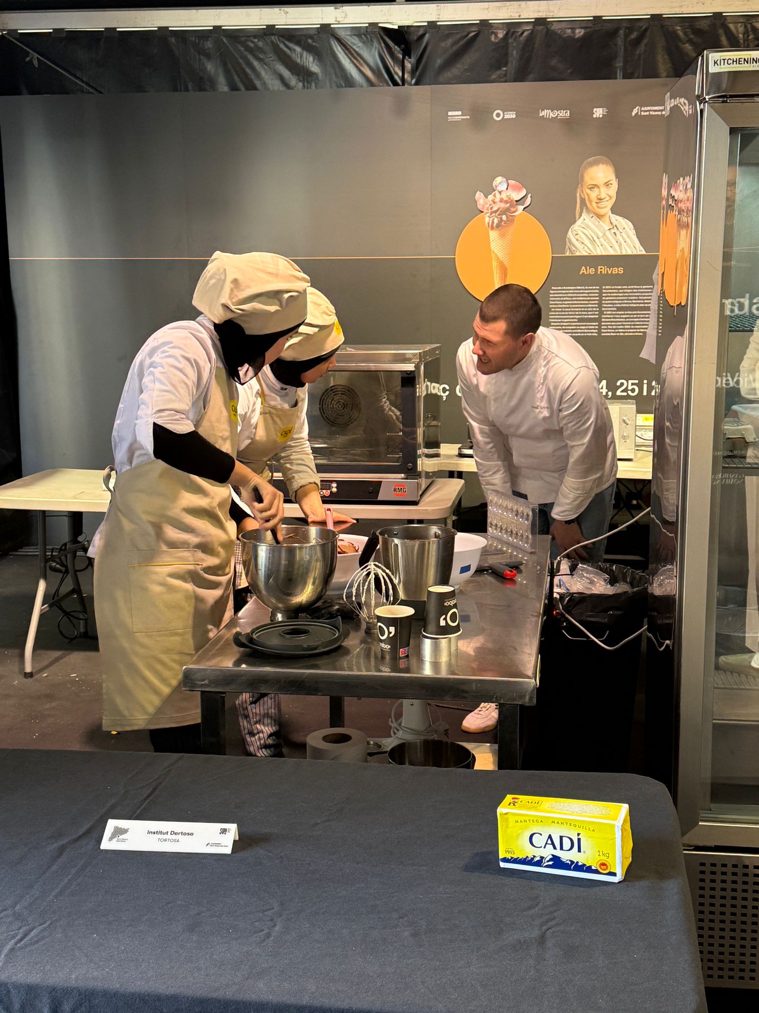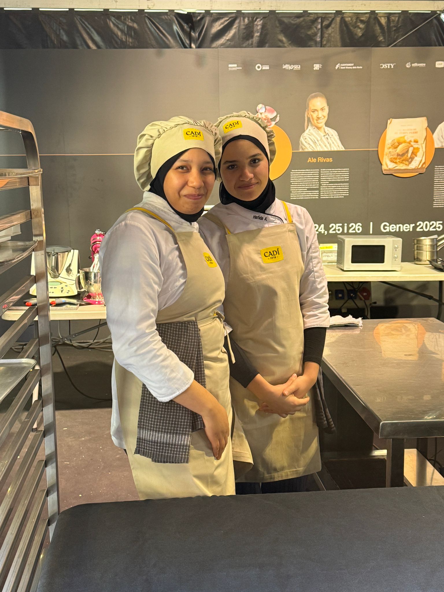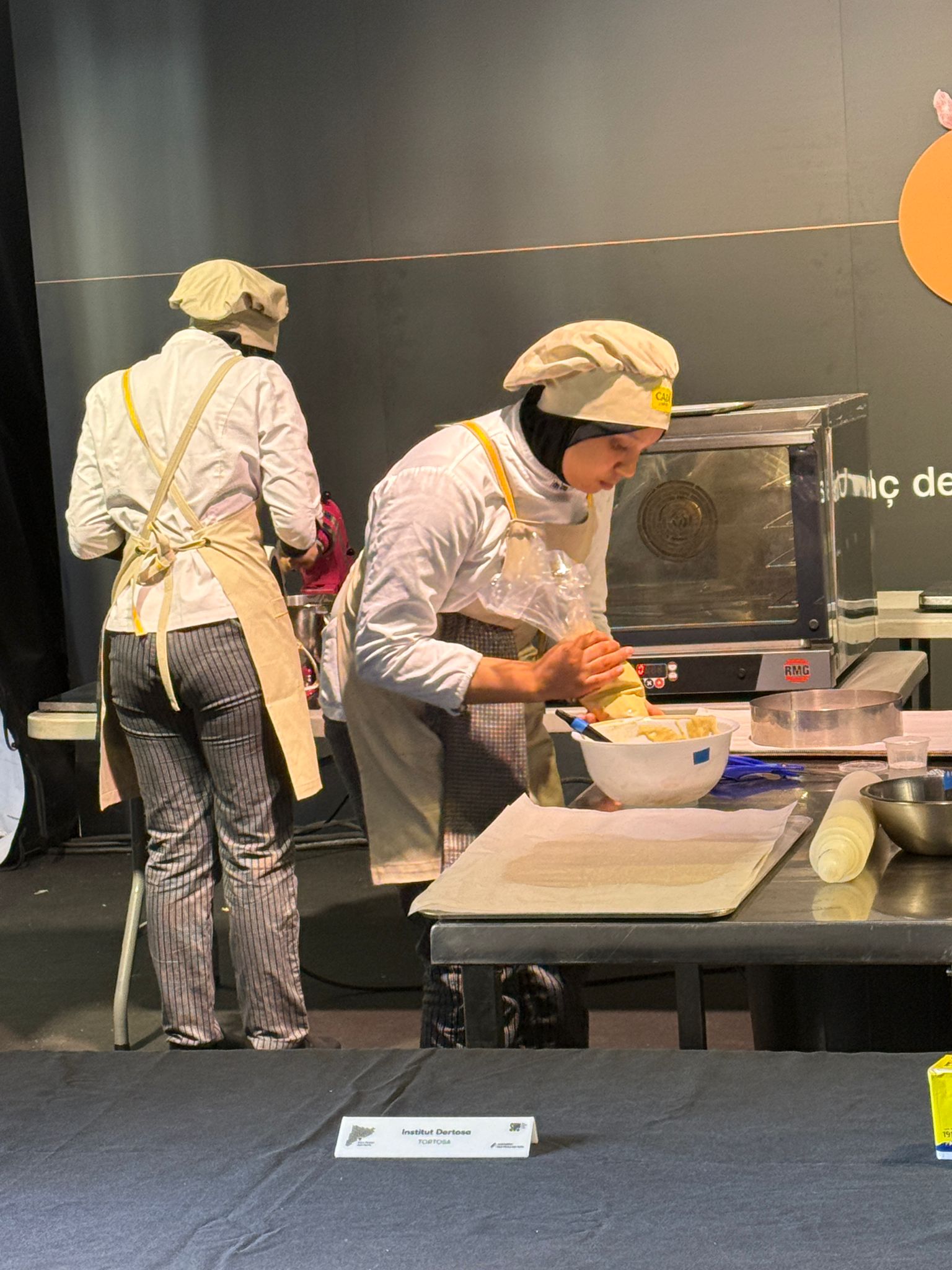 Dues alumnes del cicle formatiu de Pastisseria, Fatima Ourmous i Hafida Aboudaoud han estat preparant la prova amb el suport i acompanyament dels professor Sergio Márquez.