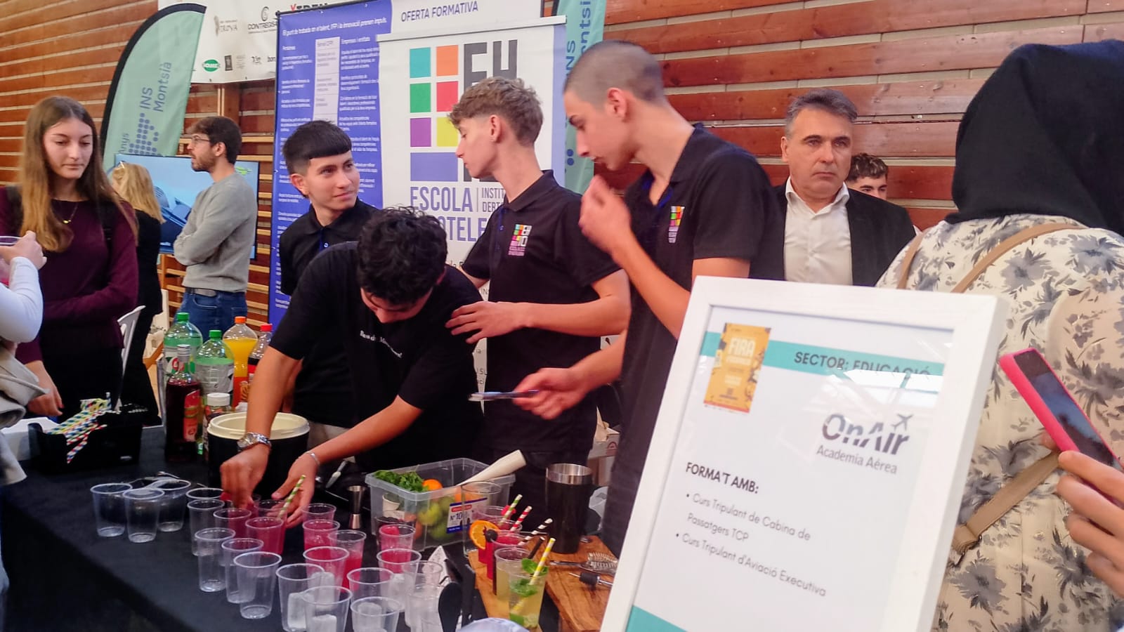 L’alumnat del PFI-PTT de Serveis en Restauració i Cuina va oferir diversos còctels als visitants que s’interessaven per l’oferta formativa del centre, mostrant les habilitats i competències que es treballen al programa.