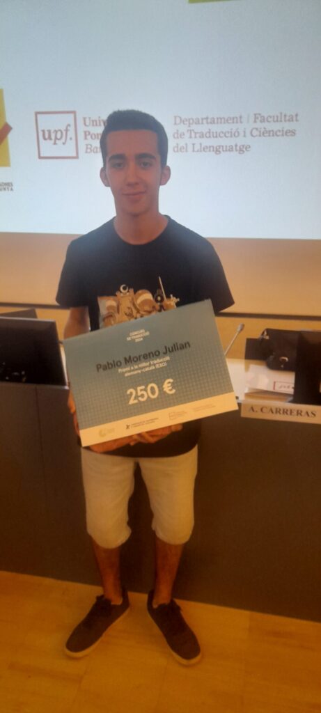 In diesem Jahr werden 14 Schüler*innen unserer Schule am XXVI Übersetzungswettbewerb der Universitat Pompeu Fabra teilnehmen. Konkret handelt es sich um: 4 Schüler*innen der 10. Klasse Deutsch, 4 Schüler*innen der 11. Klasse im Fach Deutsch als Profilfach, 2 Schüler*innen der 10. Klasse Französisch als Wahlfach und 4 Schüler*innen der 11. und 12. Klasse Französisch als Profilfach.