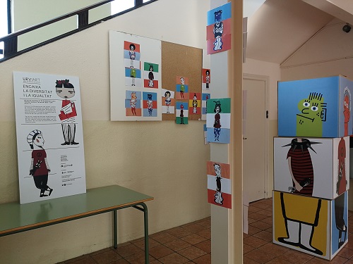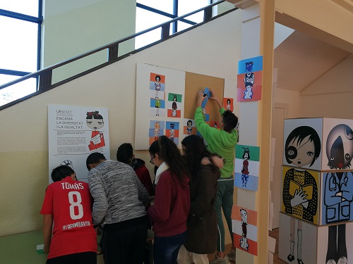 L’acció “Encaixa la diversitat i la igualtat” ha estat creada per quatre il·lustradors de les Terres de l’Ebre amb estils molt diferents, Ignasi Blanch, Marta Viladrich, Hernan en H i Agustí Sousa. L’URVIART, Espai de Creació Col·lectiva del campus Terres de l’Ebre que coordina el campus Extens de la Universitat Rovira i Virgili a Tortosa, té l’objectiu de contribuir a la construcció d’una societat més oberta, plural, democràtica, respectuosa, cívica i cohesionada. “Entenem la diversitat com una riquesa i creiem que actualment, encara hi ha poca sensibilitat i respecte envers les diferències, siguin culturals, d’orientació sexual, de gènere o de color de la pell”, apunta Núria Gil, responsable del campus Extens de la URV a Tortosa i professora de l’Institut Dertosa. És un tema que cal treballar de manera transversal en molts àmbits: l’educació, la política, els mitjans de comunicació. La proposta que envaeix el vestíbul central de l’Institut Dertosa ha estat dirigida per Núria Gil i produïda per Cristina Bestratén. “