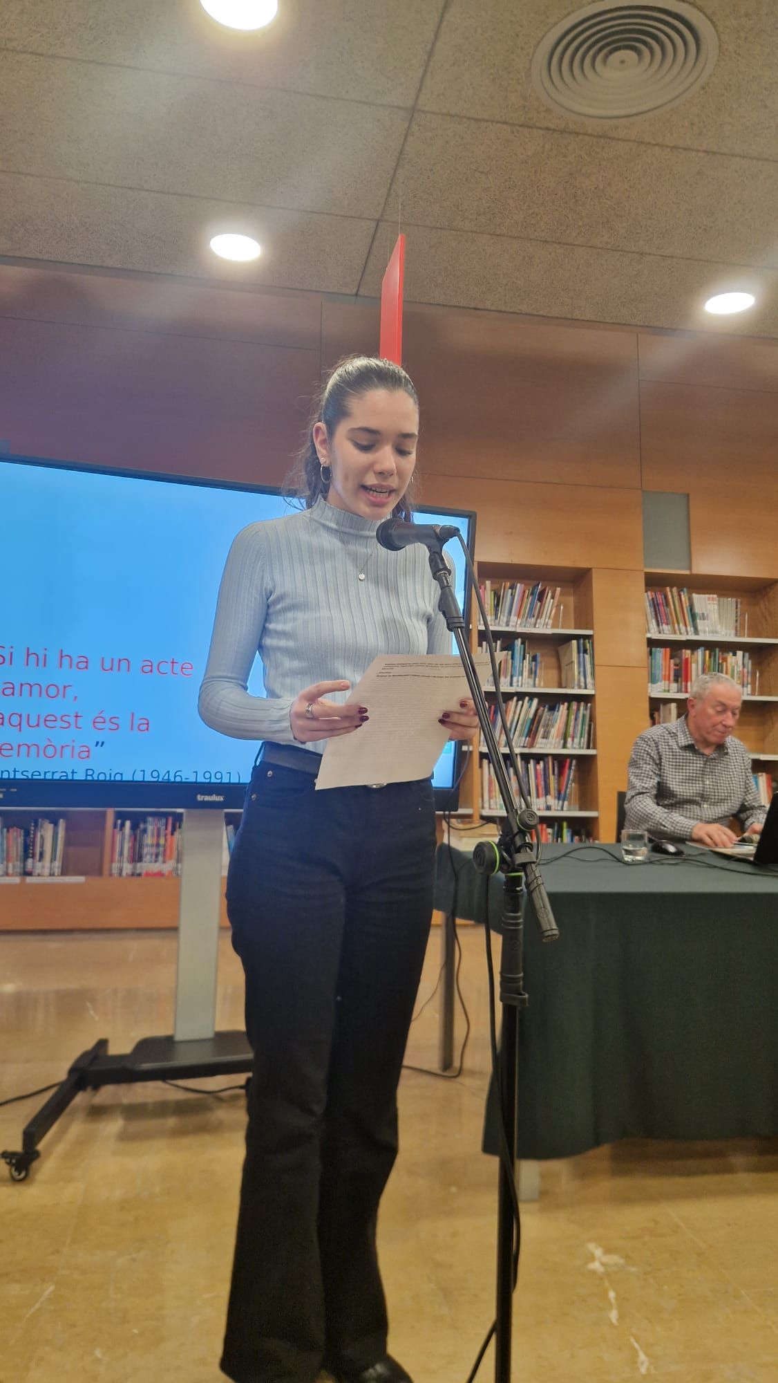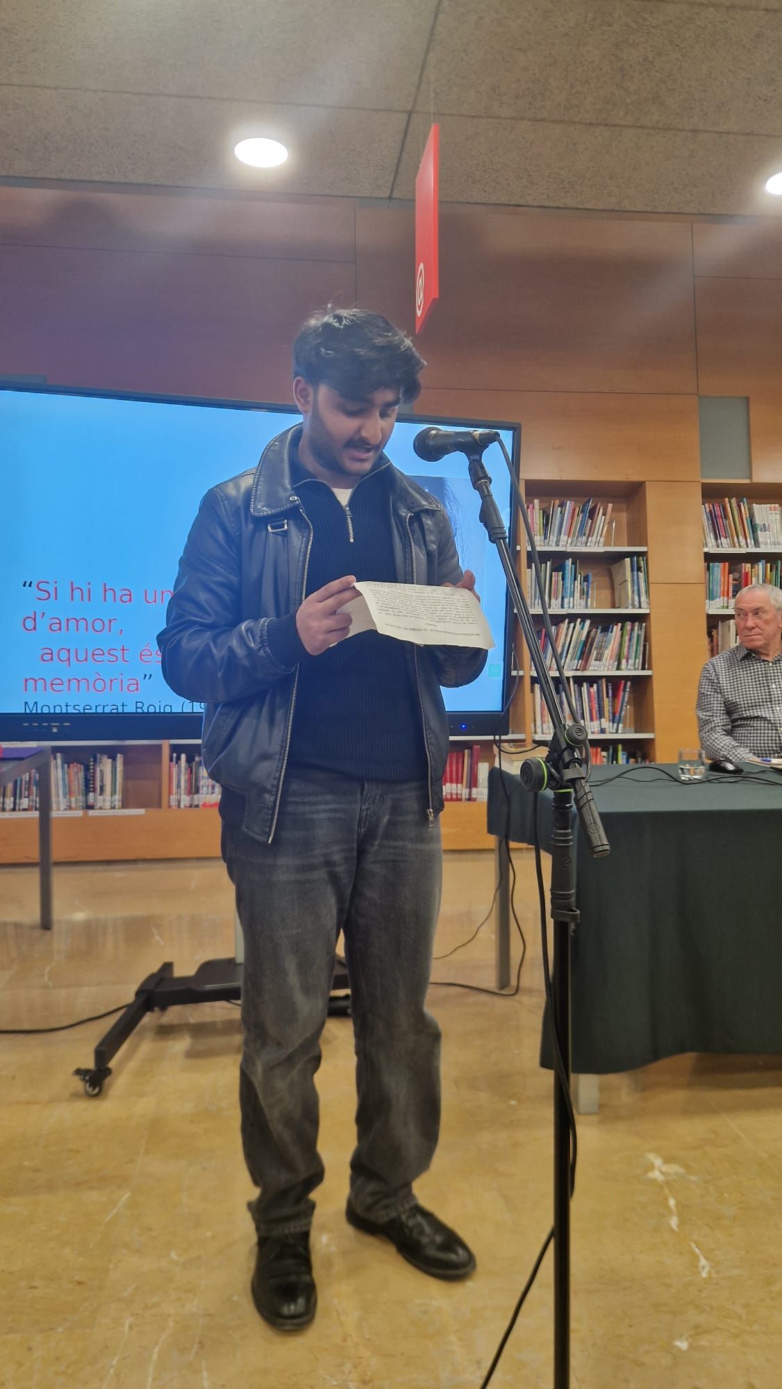 Durant la cerimònia, Maria i Zeeshan van encarregar-se de la lectura del manifest commemoratiu, un moment carregat d’emoció i reflexió sobre els horrors del passat i la importància de mantenir viva la memòria històrica. Les paraules dels alumnes van ressonar profundament entre els assistents, recordant la necessitat de no oblidar les tragèdies que van succeir durant l’Holocaust.