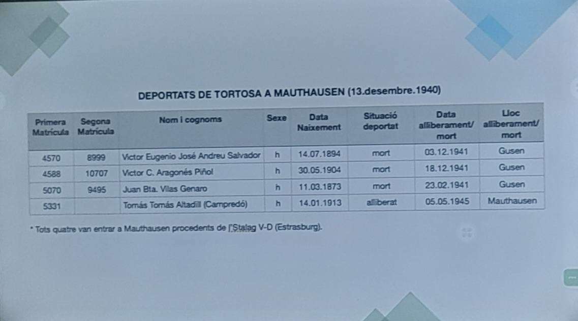L’acte va coincidir també amb la presentació de l’estudi de l’estudiós canareu Joan Baptista Beltran, que aprofundeix en la història dels deportats tortosins als camps nazis. Aquesta investigació proporciona una visió detallada i impactant sobre la dura realitat que van viure aquestes persones, i representa un valuós document per a la preservació de la memòria històrica de Tortosa.